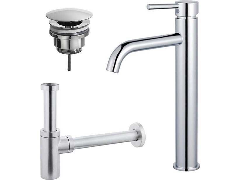 Wastafelkraanset - verhoogde wastafelkraan - always open plug - design sifon - chroom