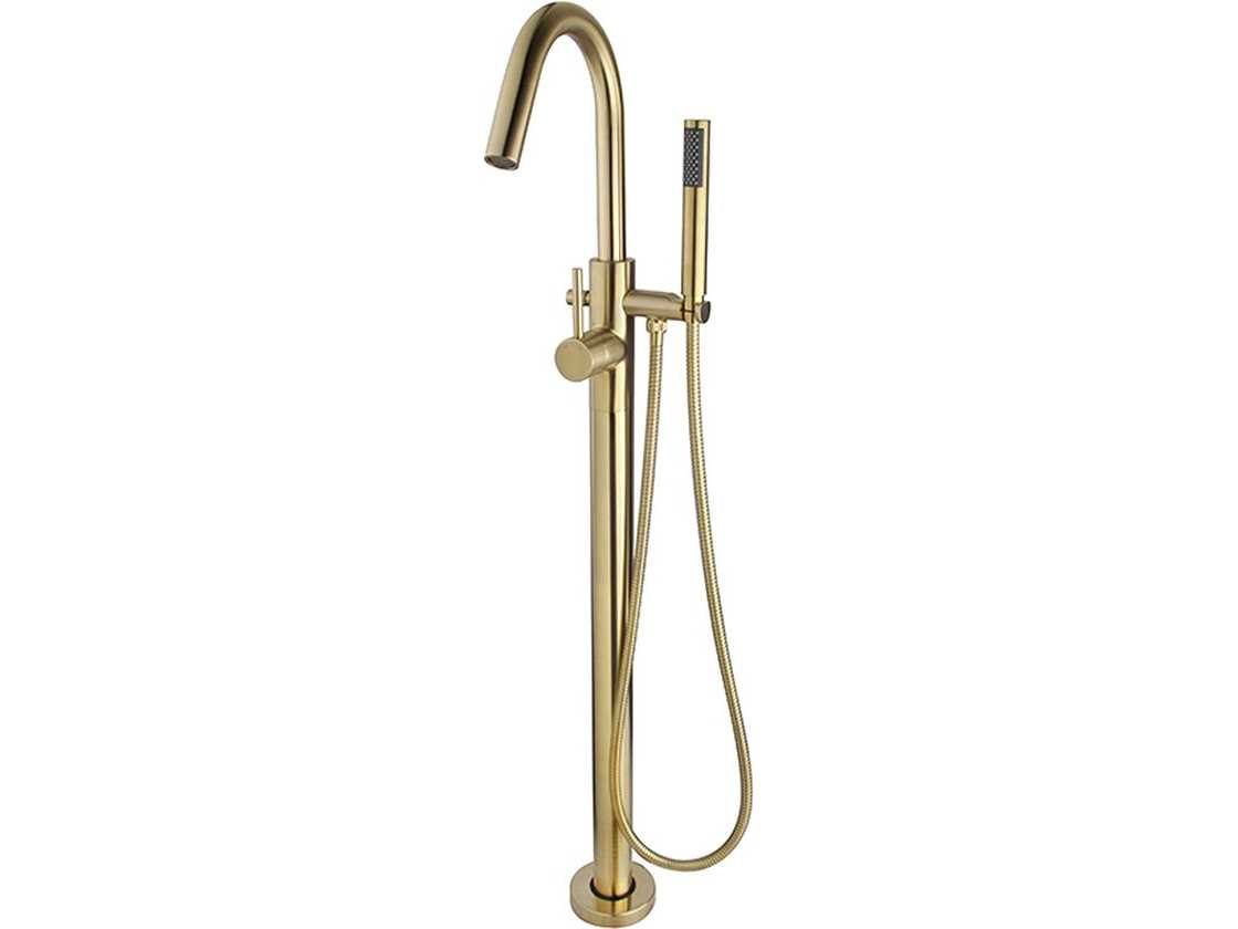 Vrijstaande badkraan compleet 1 greeps met handdouche geborsteld messing
