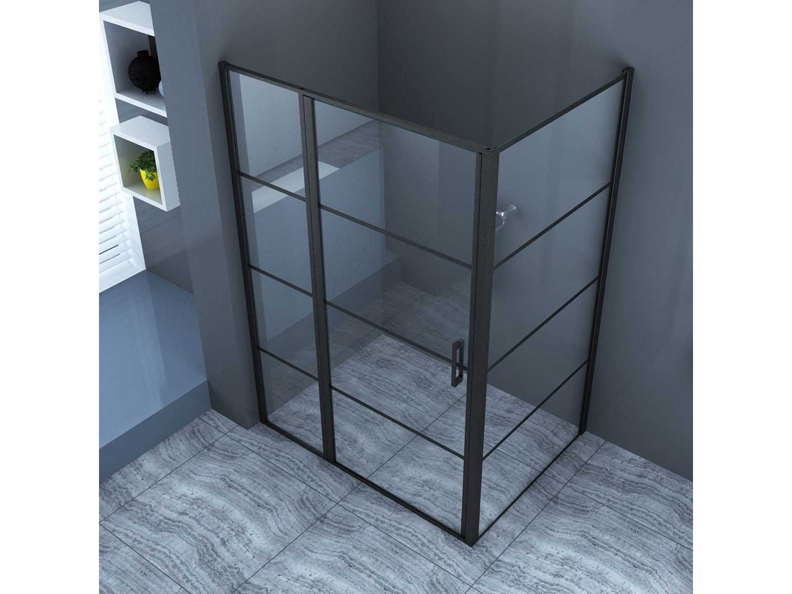 Douchecabine - 140x90 - mat zwart - rechthoek - draaideur - 8mm veiligheidsglas