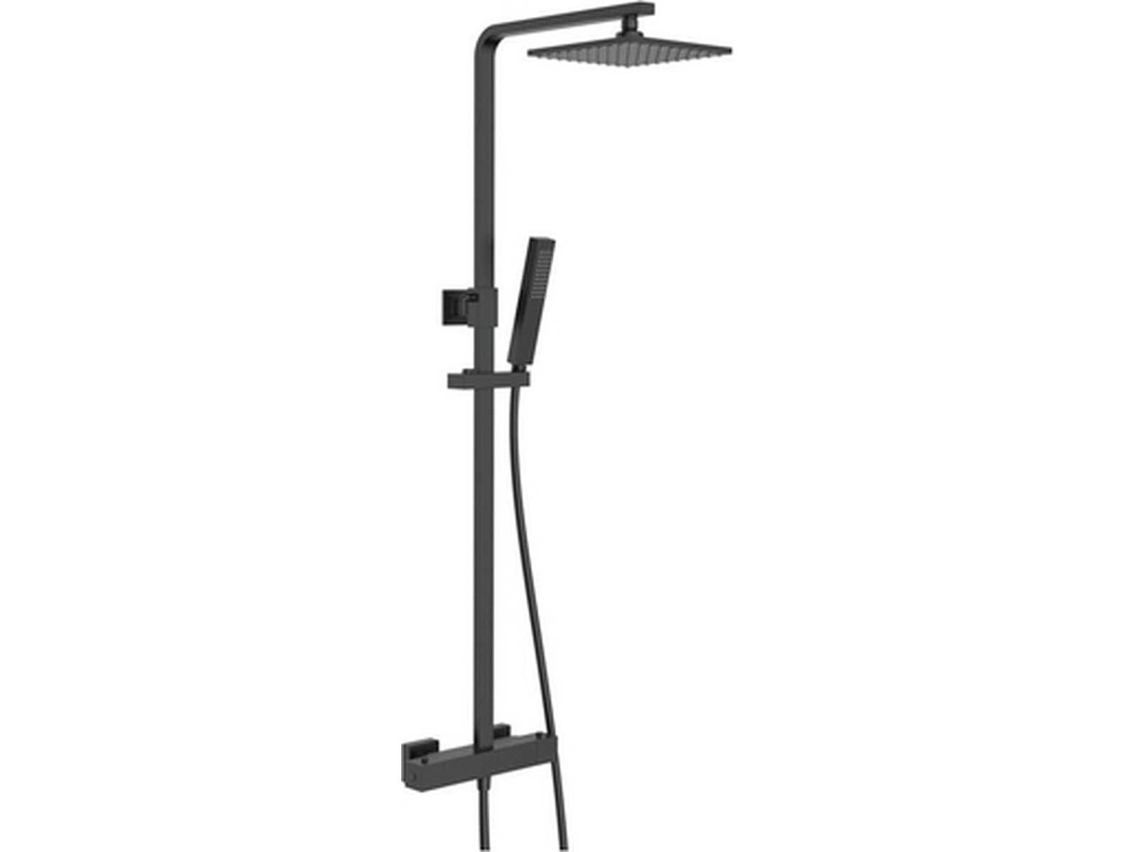 Regendoucheset met thermostaat hoofddouche staaf handdouche vierkant zwart mat