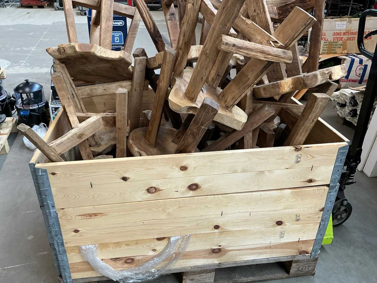Liggende in palletbox, palletbox niet inbegrepen Nee Model: Boomstam Lengte: 43cm Breedte: 40cm Hoogte: 45cm Zithoogte: 45cm Materiaal: Massief hout