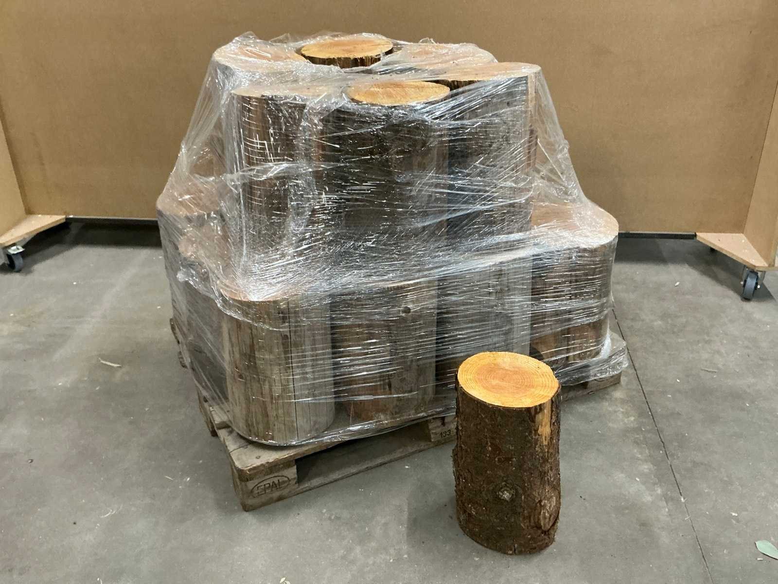 Liggende op 1 pallet Nee Model: Boomstam Lengte: 22cm Breedte: 22cm Hoogte: 40cm Zithoogte: 40cm Materiaal: Massief hout