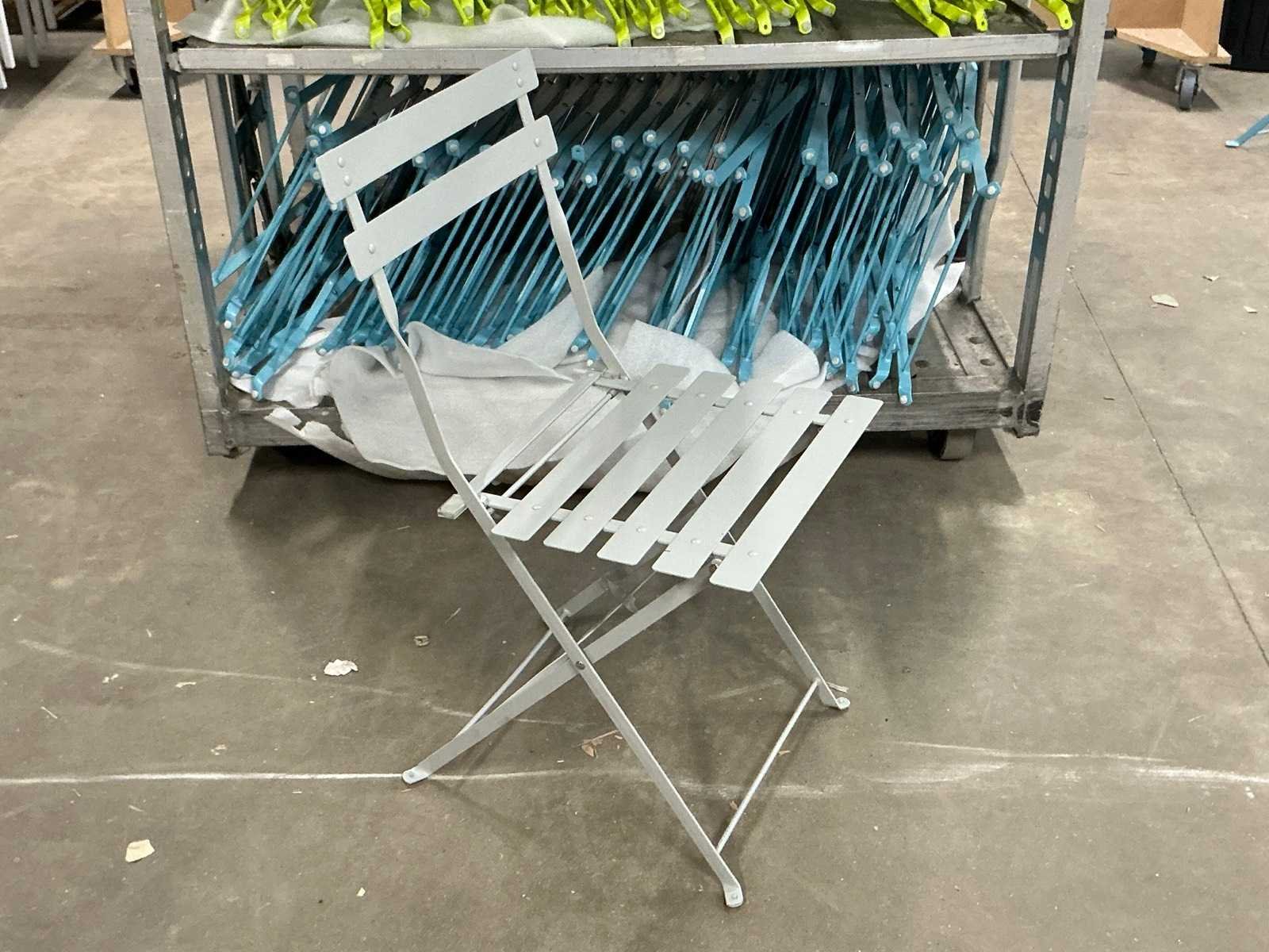 Waaronder 20x rood, 20x grijs, 20x limoen groen en 20x turquoise, Liggende op metalen transportkar 130 x 104 x 215cm Nee Model: Partij Product type: Opklapbare Materiaal: Metaal