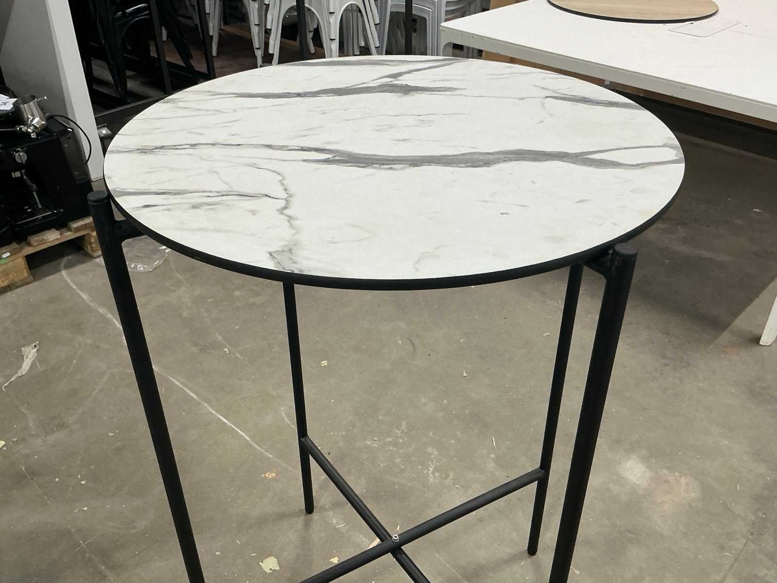 Voorzien van HPL houten omkeerbaar bovenblad, Waaronder 1 voorzien van marmer ‘look’ Nee Product type: Opklapbaar Lengte: 70cm Breedte: 70cm Hoogte: 106cm Materiaal: Metaal