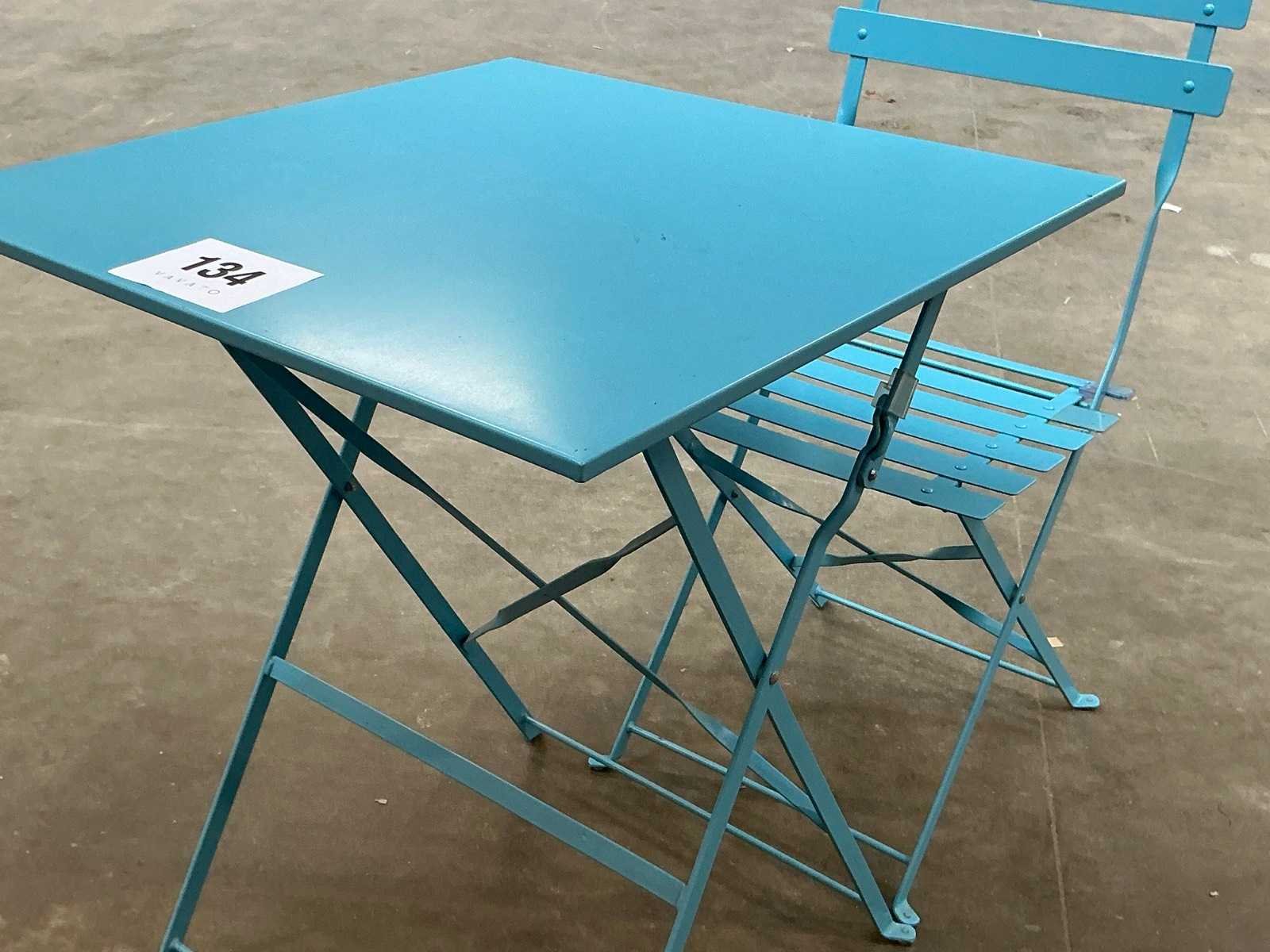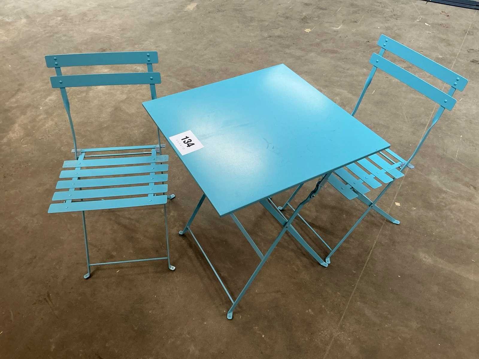 Bestaande uit 1 opklapbare tafel 60 x 60 x 72cm en 2 opklapbare bijzetstoelen Nee Materiaal: Metaal
