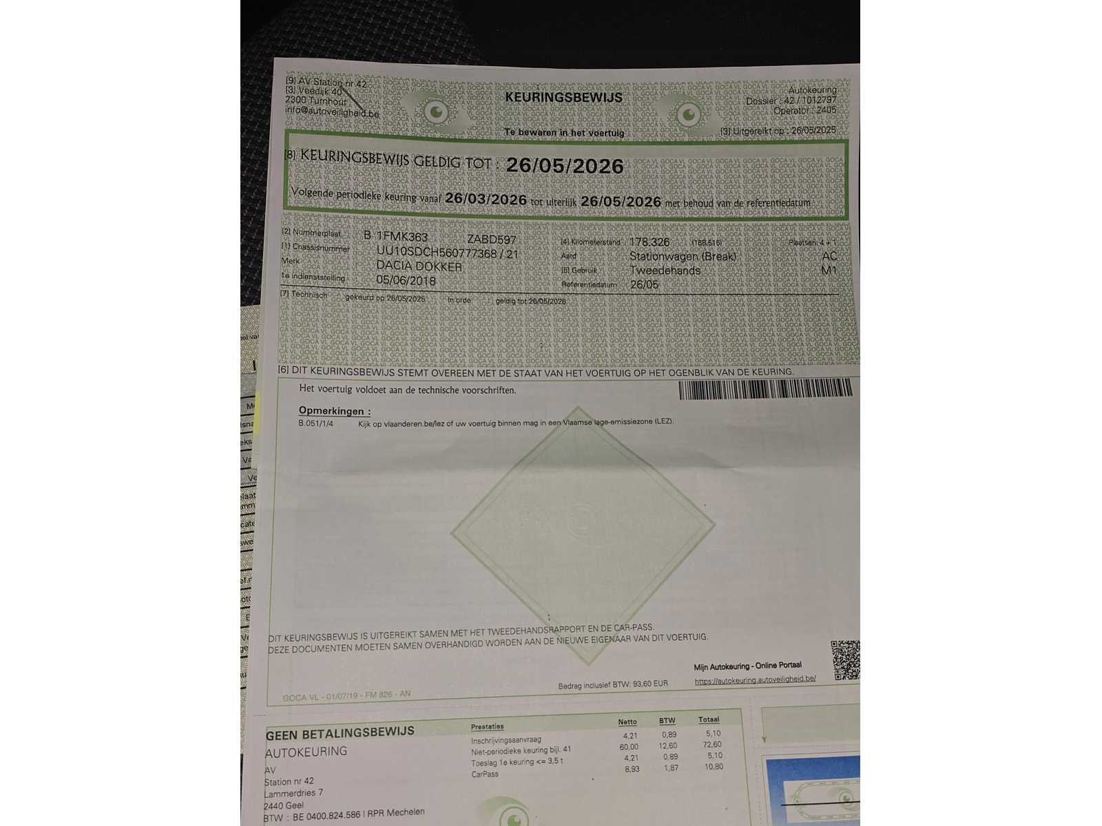 Belgische wagen alle boorddocumenten aanwezig No Merk: Dacia Model: Dokker Bouwjaar: 2018 Afgelezen kilometerstand: 189876km Vermogen (kW): 55kW Brandstof: Diesel Datum eerste toelating: 2018 Datum eerste toelating (NL): 2018 APK vervaldatum: 5/2026 Aandrijving: Ja Aantal zitplaatsen: 5 Kleur: Wit Transmissie: handgeschakeld Emissieklasse: 6b Aantal deuren: 4 Aantal sleutels: 1 CO2-uitstoot NEDC: 108 Gelijkvormigheidsattest aanwezig: true Carpass: true Start en rijdt: Ja Keuringsrapport geldig tot: 5/2026 Technische fiche: true Vavato voert geen technische keuring uit.: true Inschrijvingsbewijs - deel 1 : Ja Inschrijvingsbewijs - deel 2: Ja