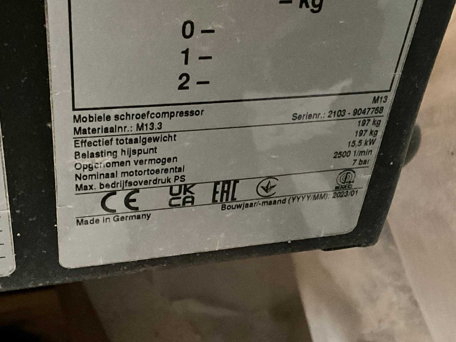 2023 sigma m13a mobiele schroefcompressor