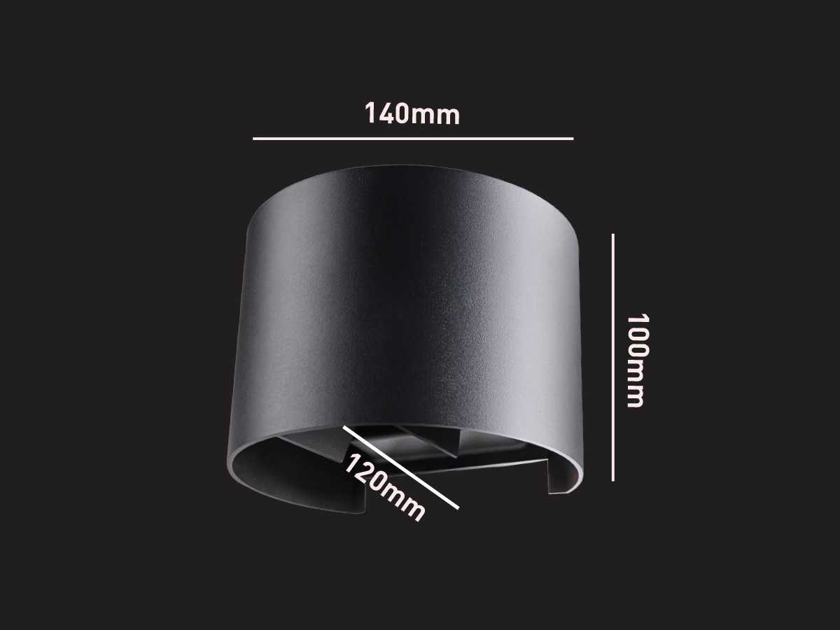 Afdichting IP65, verstelbare hoek van de lichtbundels, lichtkleur 3000K warm wit, lichtstroom 1160 lumen, COB LED, materiaal aluminium, boven en onder verlichting, afm. Ø 140mm x 120mm x 100mm, voltage 220-240V, bevestiging inclusief, geschikt voor binnen en buiten, SKU 00978 No Merk: LAMPINNO Product type: Binnen en buiten Verstelbaar: true Wattage: 12W Lichtbron: LED Kleurtemperatuur: 3000K Kleur: Zand Zwart Lengte: 14cm Breedte: 12cm Hoogte: 10cm Materiaal: Aluminium