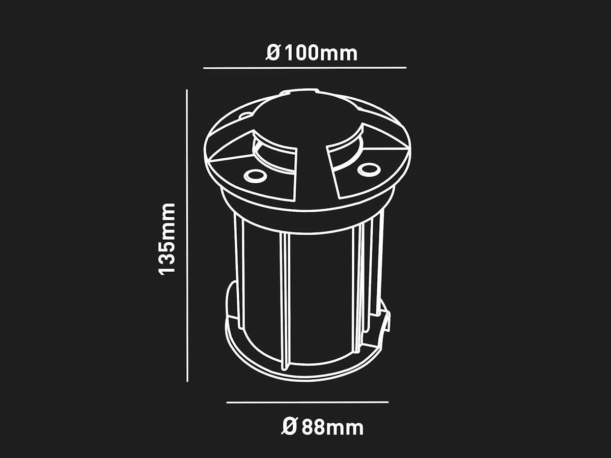 IP67 waterdicht, material aluminium en glas, afm Ø 100mm x 135mm, voltage 220-240V, GU10 spot niet inclusief, bevestiging niet inclusief, geschikt voor binnen en buiten, SKU 01169 No Merk: LAMPINNO Product type: Buiten Fitting: GU10 Kleur: Zwart Lengte: 13.5cm Breedte: 10cm Materiaal: aluminium en glas