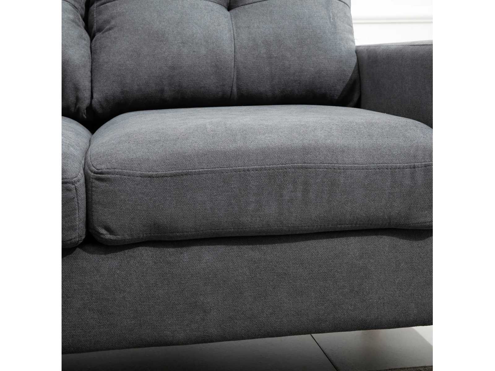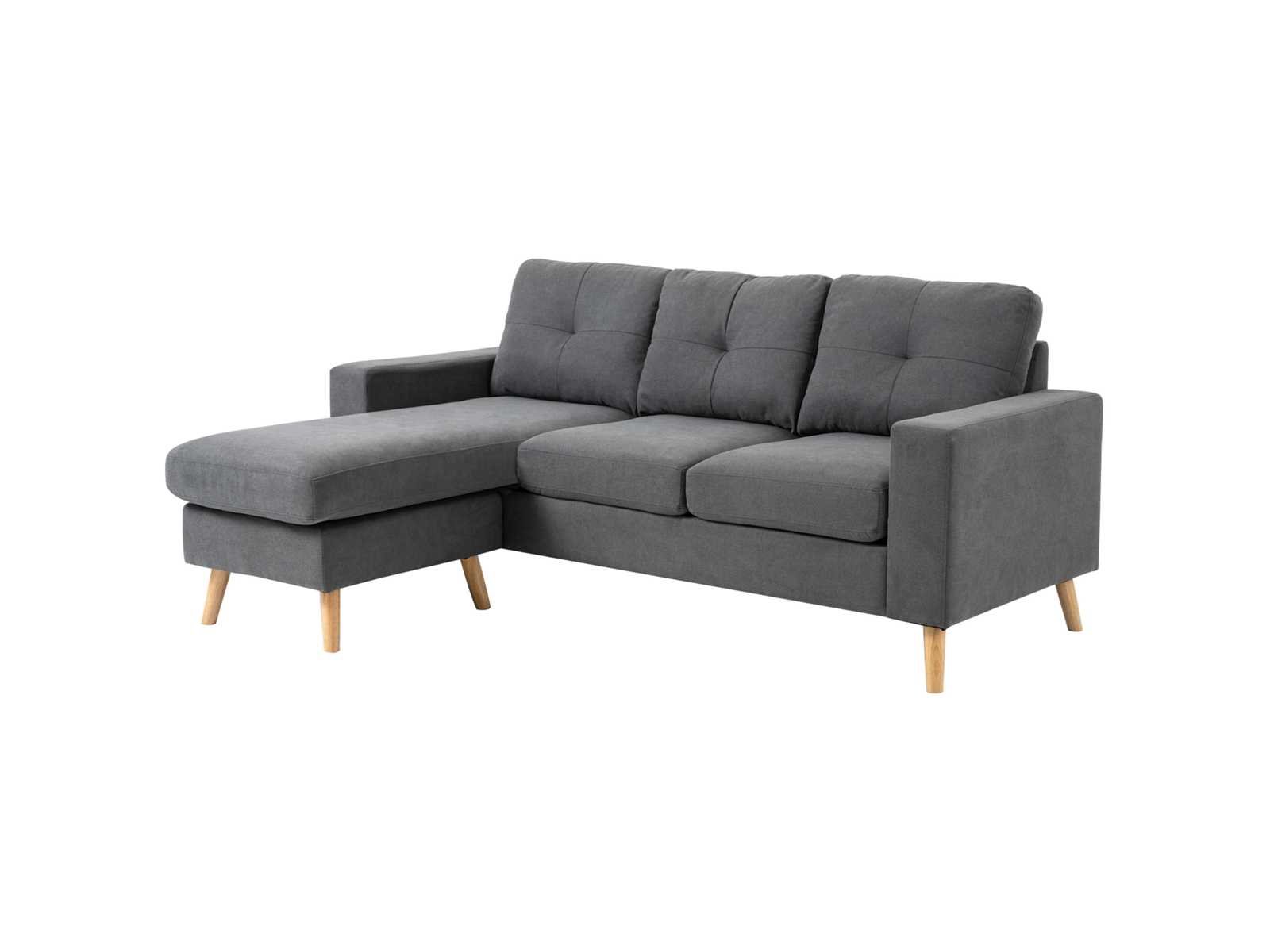 Hoekbank in scandinavisch ontwerp, met getufte knopen, massief hout, linnen look, grijs