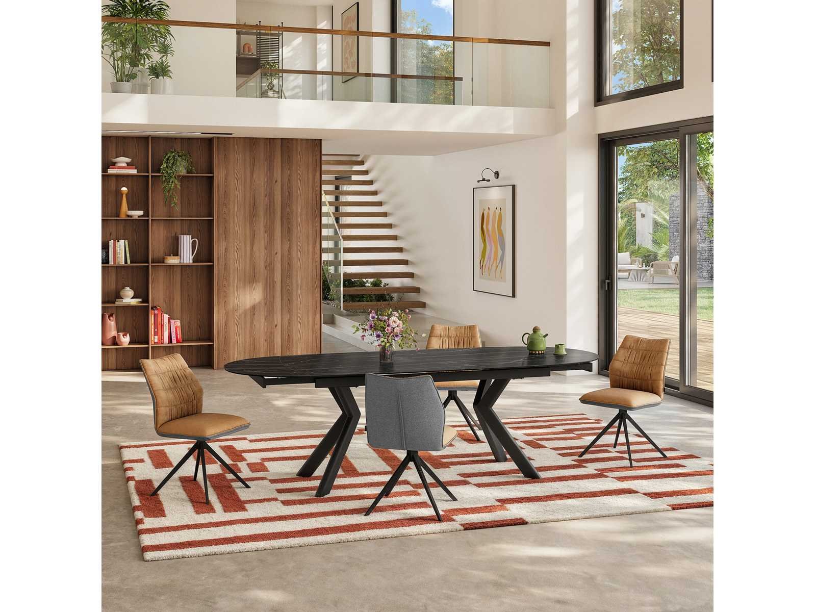 Stoelen in stof en zwart metaal - oker en grijs (x8)