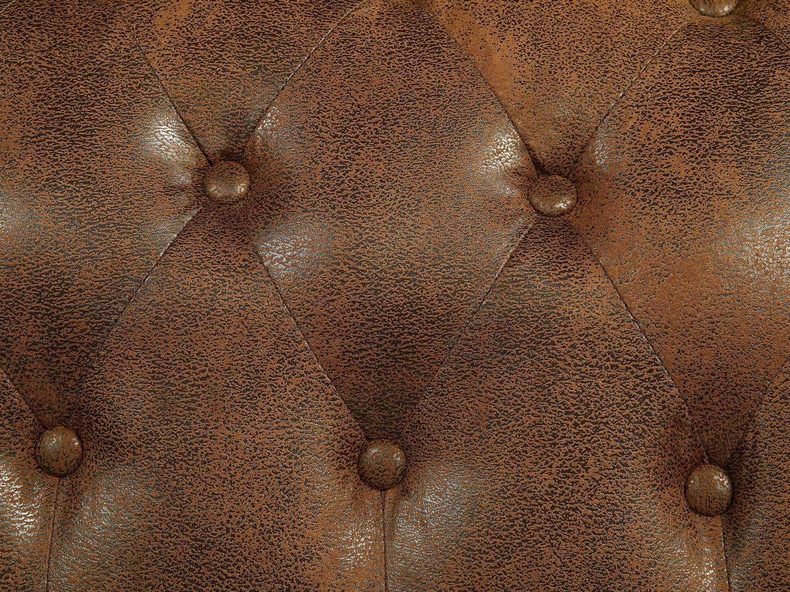 Kenmerken Kleur (tint): Brown Materiaal: 100% polyester, microvezel Materiaal (Basis): Hout Structuur: Hout, multiplex Fins: Bekleed, Oud Modeltype: Chesterfield Aantal plaatsen: 1 zetel Opties: Verwijderbare afdekking Verwijderbaar onderdeel: Zetel Zitbekleding: Polyurethaanschuim Zitdichtheid: 25 kg/m³ Stoelvering: Nosag-veren, kruisende elastische banden, spiraalveren Achterleuningbekleding: Polyurethaanschuim Rugsteundichtheid: 22 kg/m³ Schorsing van het dossier: Kruis-kruis elastische banden Met armleuningen Bereik: À la carte Maximale belasting ondersteund: 120 kg Geassembleerd geleverd (behalve voeten en/of handgrepen) Afmetingen Lengte: 82 cm Lengte: 72 cm Diepte: 78 cm Beenhoogte: 8 cm Zithoogte: 42 cm Zitdiepte: 53 cm Non