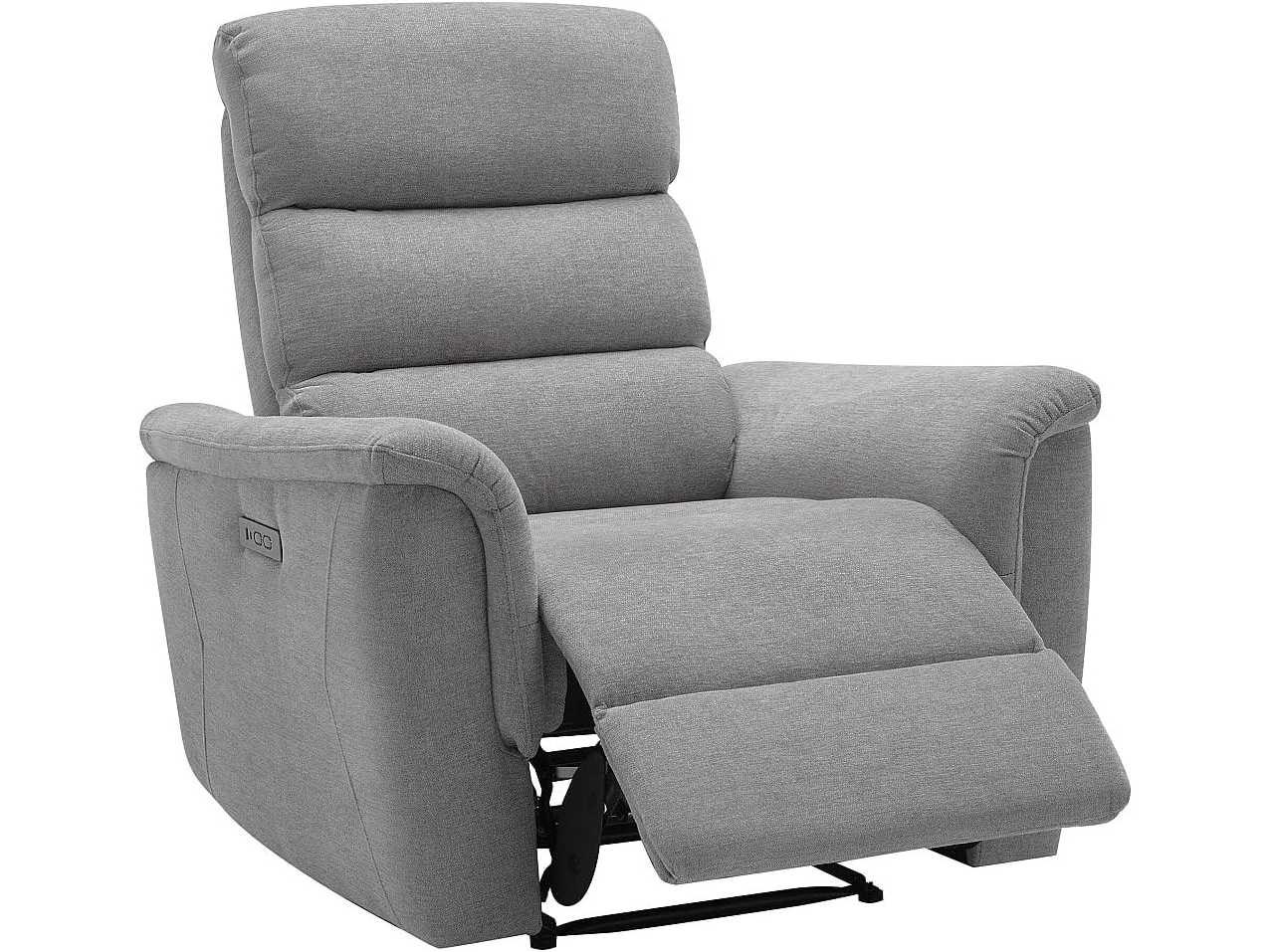 Relaxstoel Polyester Grijs Elektrische relaxstoel van grijze stof, tijdloze klassieke stijl. Gevoerde rugleuning. 135 graden veroverbare rugleuning. USB-poort inbegrepen. Afmetingen: W95 x D94 x H104 cm Zithoogte: 50 cm, Zitdiepte: 55 cm & Zitbekleding: polyurethaanschuim Elektrisch ontspanningsmechanisme, 135 graden verstelbare rugleuning, USB-poorten inbegrepen, OEKO-TEX gecertificeerd Non