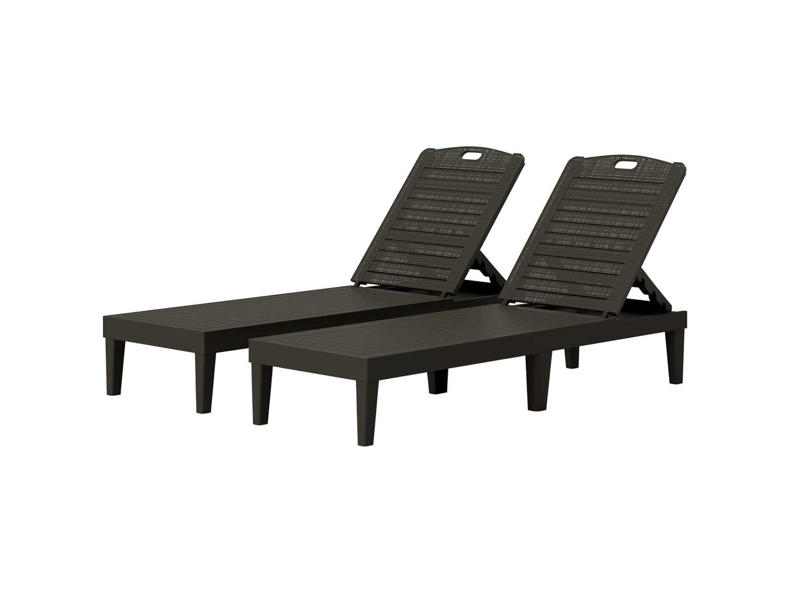 Set van 2 ligstoelen, loungestoel met 4-posities verstelbare rugleuning zwart