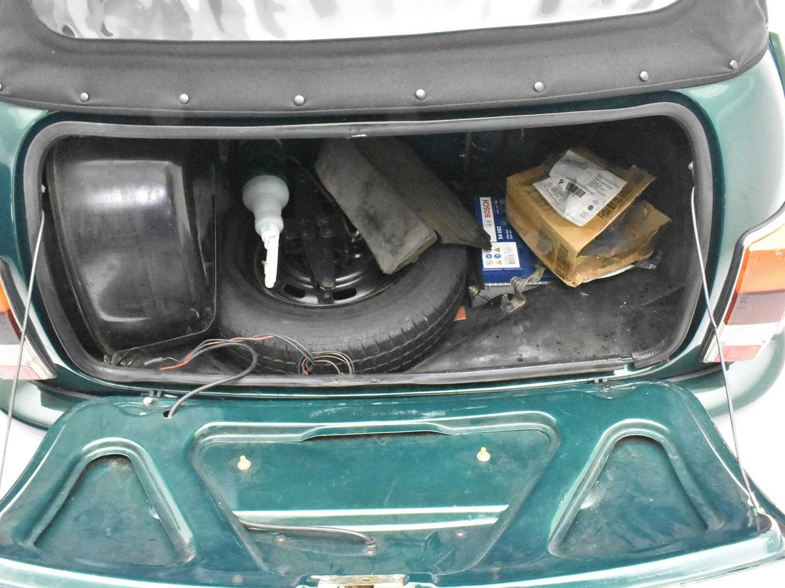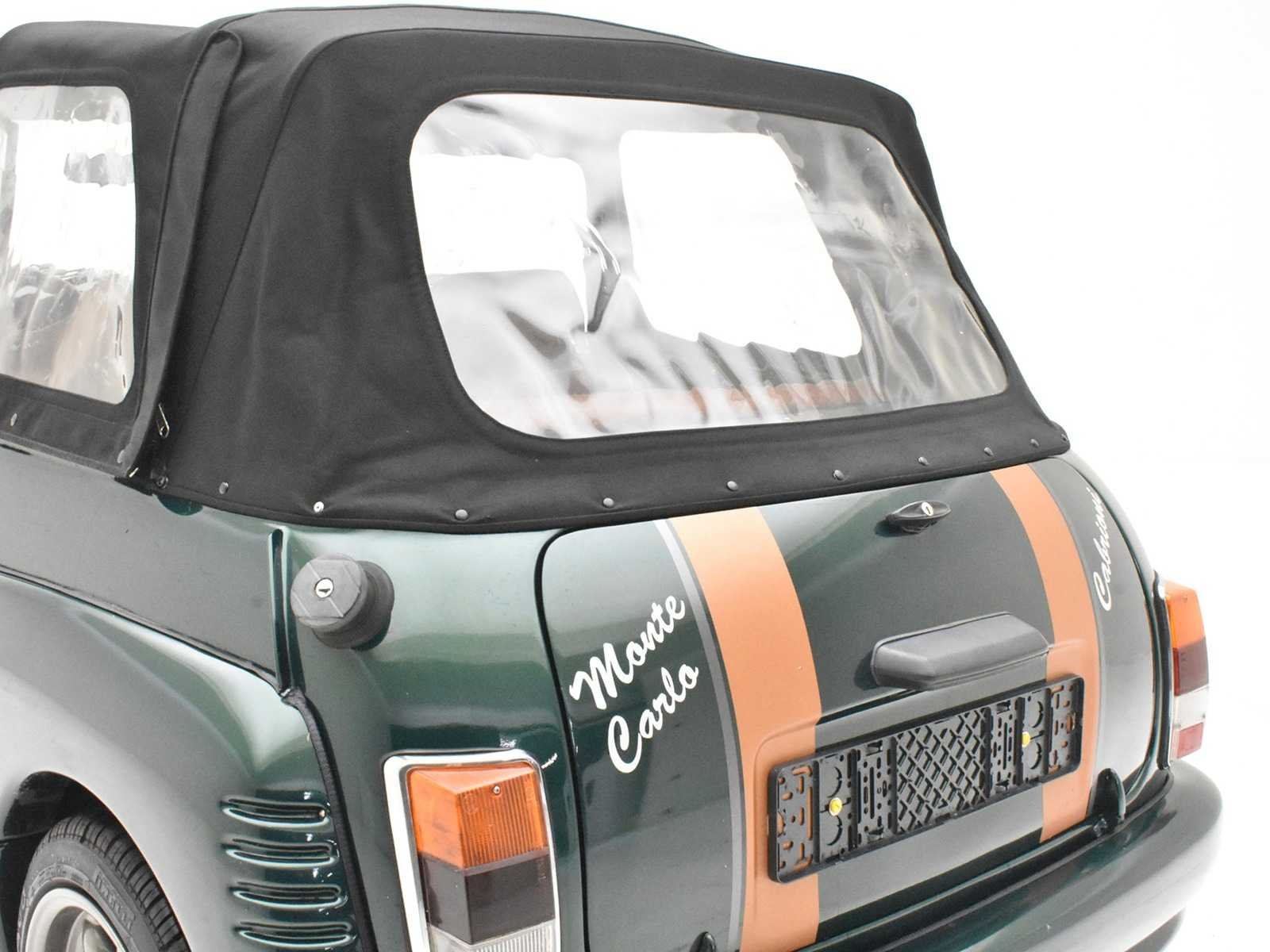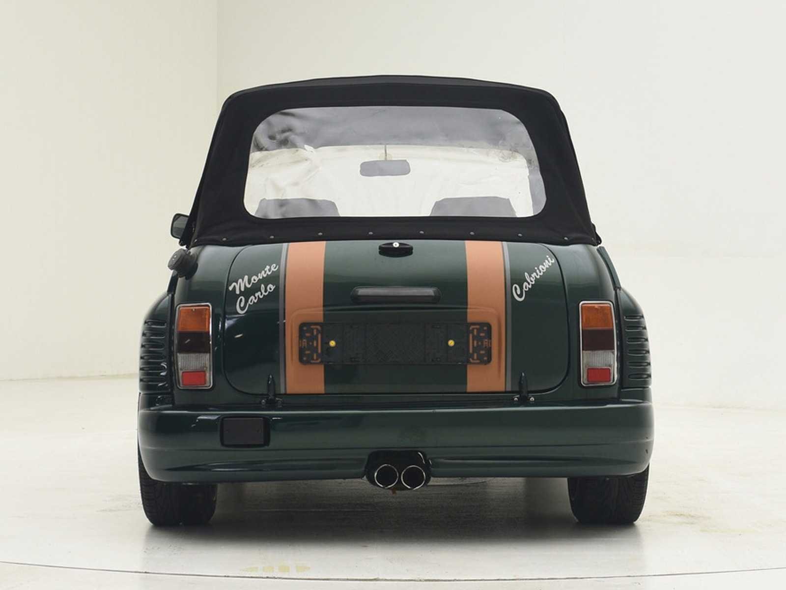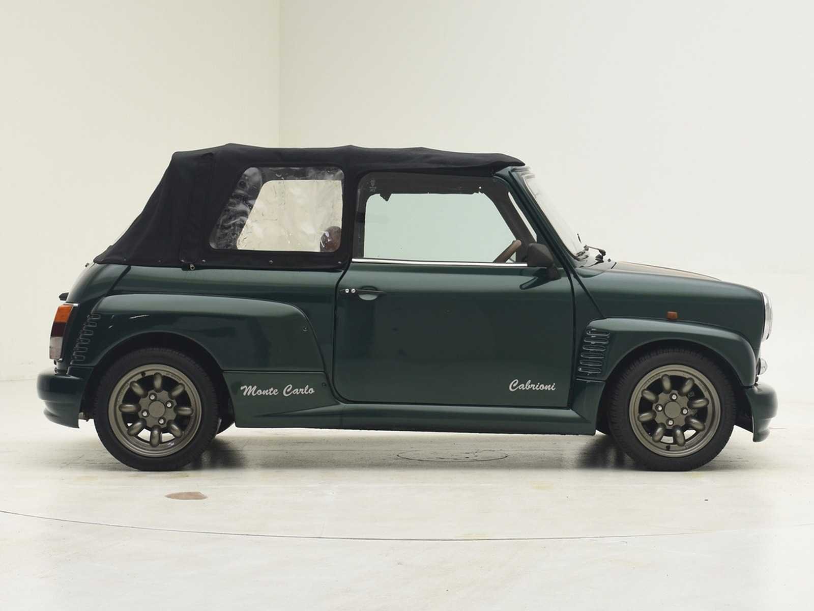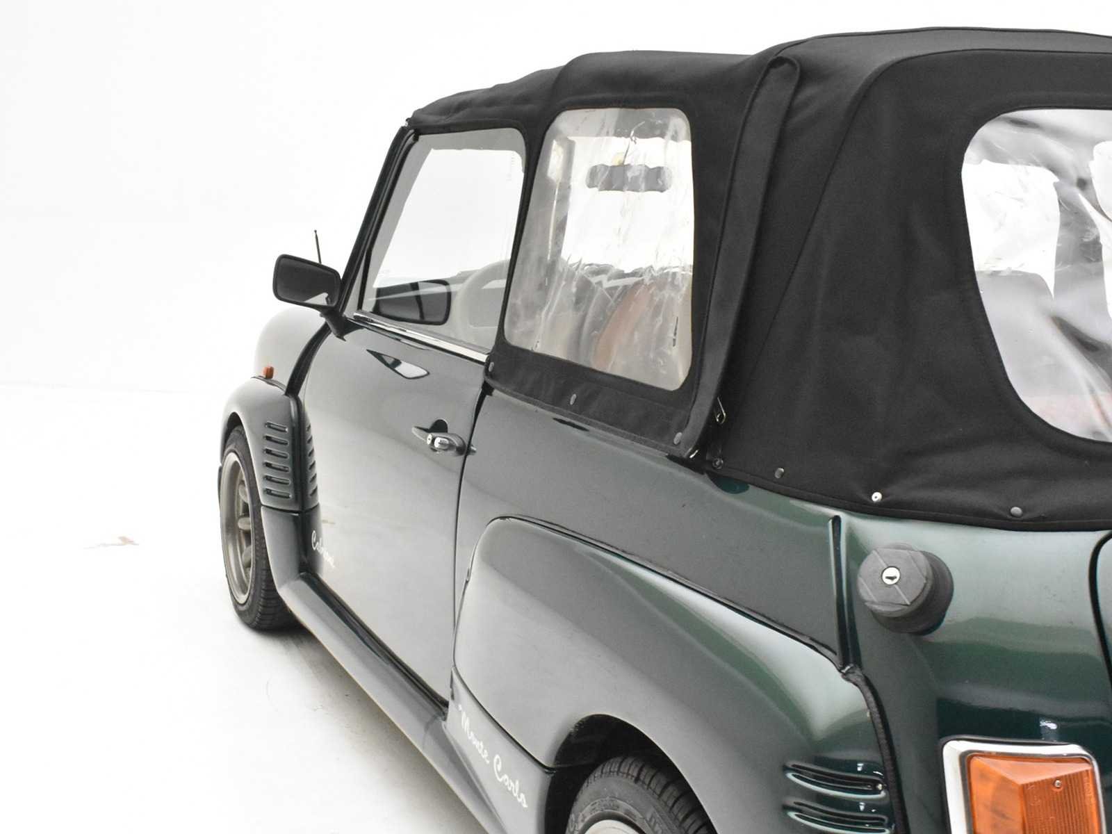 MINI CABRIONI MONTE CARLO No Merk: MINI Type: CABRIONI Bouwjaar: 1990 Chassisnummer: SAXXL2S1021460158 Afgelezen kilometerstand: 17406 Brandstof: BENZINE Datum eerste inschrijving: 17/05/1990 Boorddocumenten aanwezig?: true Nationaliteit documenten: BELGISCHE Carrosserie: CABRIO Aandrijving: VOOR Transmissie: MANUEEL Startinformatie: JA Kleur: GROEN Cilinderinhoud: 1000 Aantal cilinders: 4 Inschrijvingsbewijs - deel 1 : AANWEZIG Inschrijvingsbewijs - deel 2: AANWEZIG