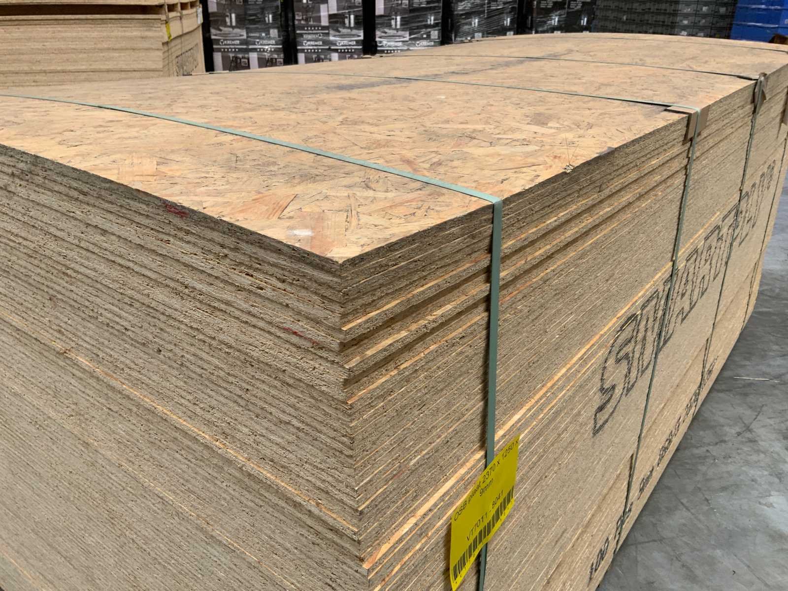 Ongebruikt; gebundeld; OSB 3 Nee Plaatafmeting l: 2370mm Plaatafmeting b: 1250mm Dikte: 9mm Totale afmeting L: 2370mm Totale afmeting Breedte: 1250mm Totale afmeting Hoogte: 1200mm