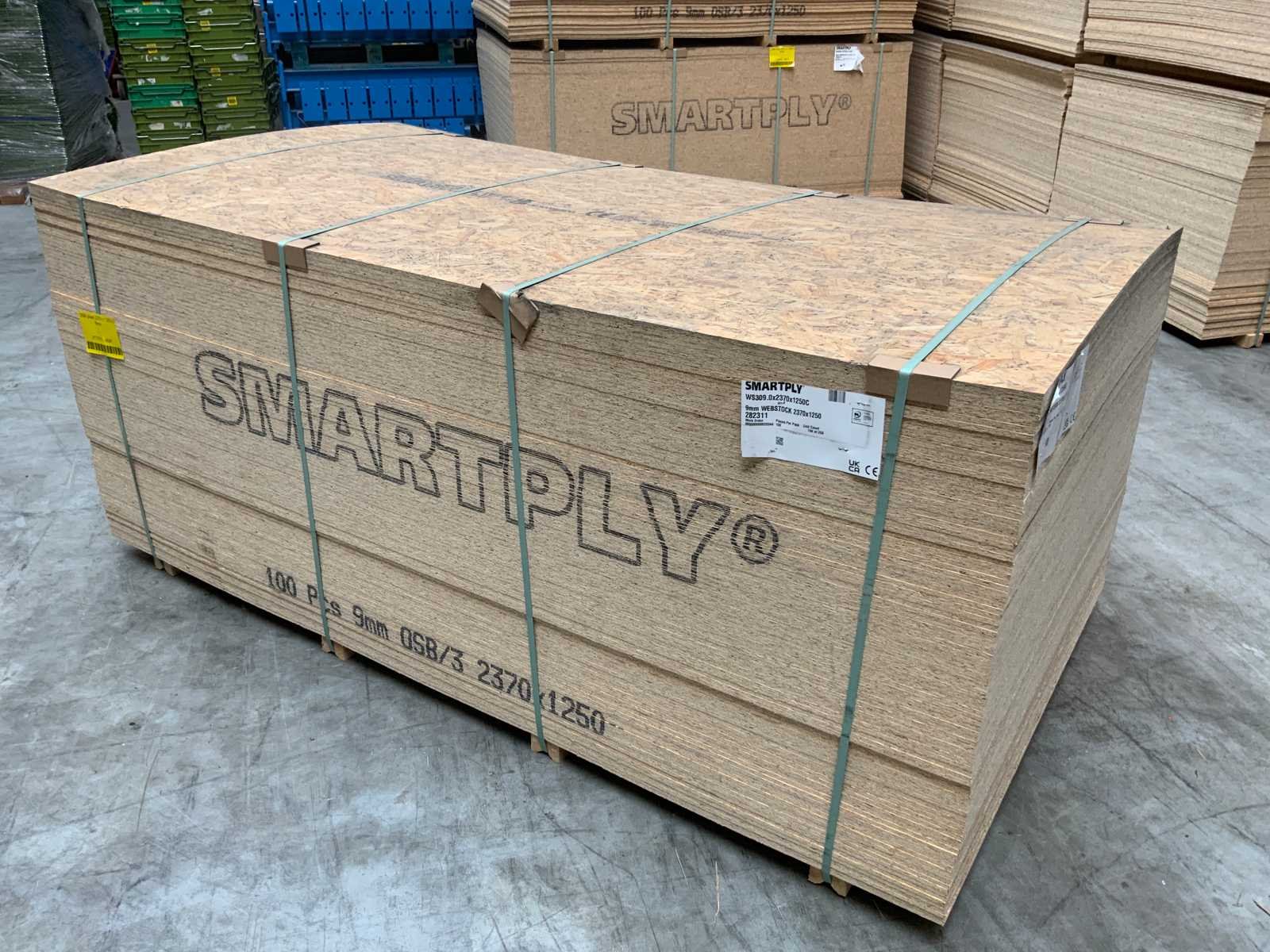 Ongebruikt; gebundeld; OSB 3 Nee Plaatafmeting l: 2370mm Plaatafmeting b: 1250mm Dikte: 9mm Totale afmeting L: 2370mm Totale afmeting Breedte: 1250mm Totale afmeting Hoogte: 1200mm