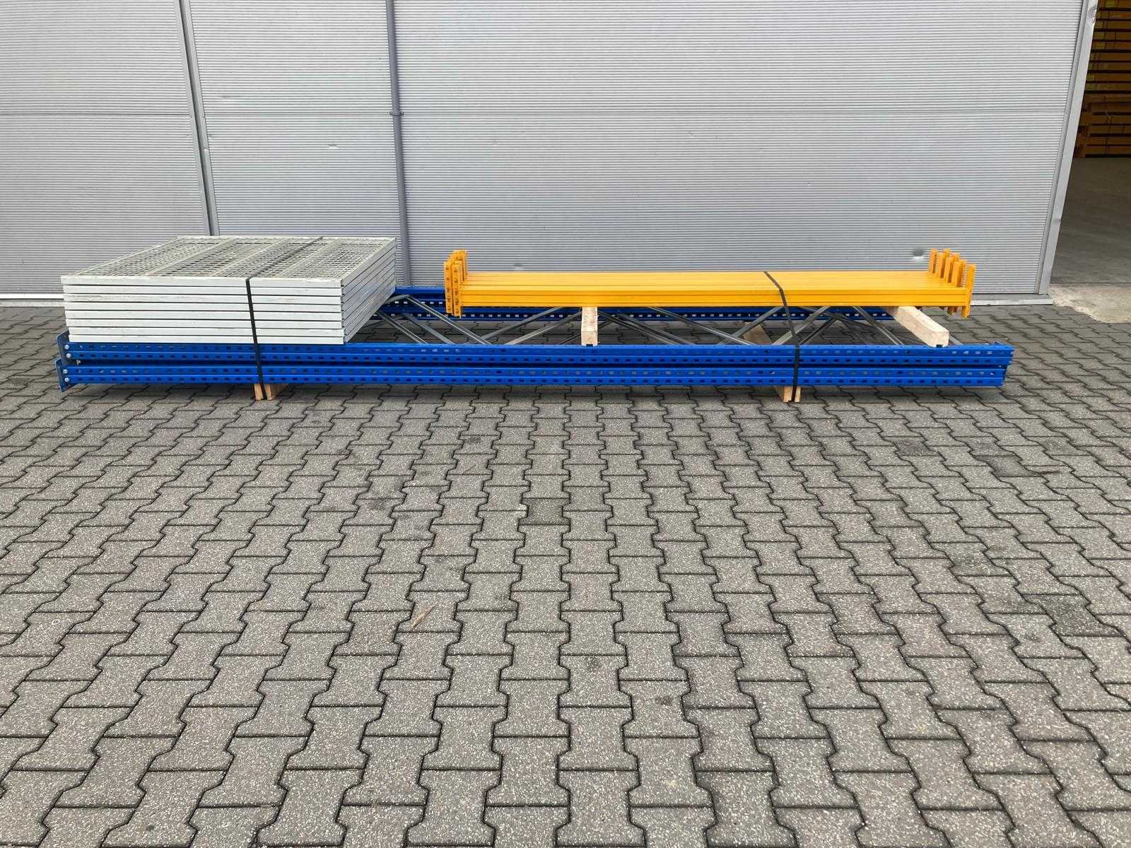 3x staander 4120x1200x80mm; 8x ligger 2400mm; 8x rooster 1200x1200mm; gebruikt; gebundeld; Zonder voetjes; Nee Merk: Jungheinrich Type: Esmena Aantal secties: 2 Sectie afm. b: 2400mm Sectie diepte: 1200mm Sectie afm. h: 4120mm
