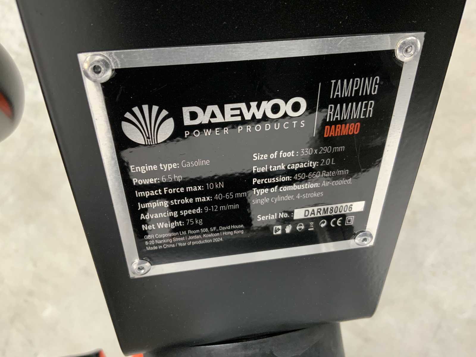 Ongebruik; in verpakking; 6.5PK; jumping stoke Max 40-65mm; aircooled; 2.0L tank; advancing speed 9-12m/min; 6528 Nee Merk: Daewoo Type: DARM80 Bouwjaar: 2025 Grondplaat afm. l: 330mm Grondplaat afm. b: 290mm Centrifugale kracht: 10kN Merk motor: Loncin Brandstof: benzine Eigen gewicht: 62kg Totale afmeting L: 750mm Totale afmeting Breedte: 480mm Totale afmeting Hoogte: 1080mm
