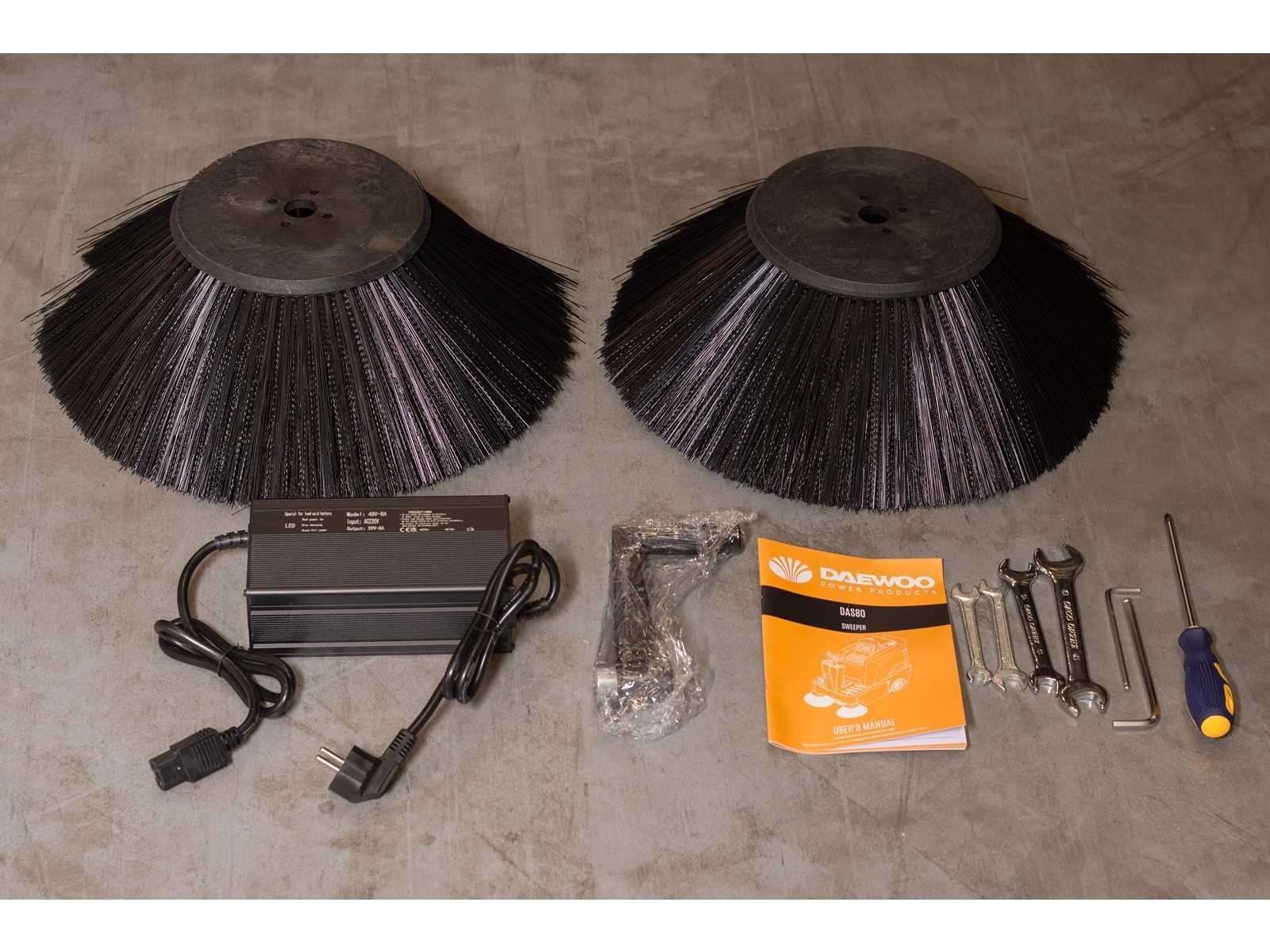Accu capaciteit 48v/65ah 4 stuks; werk capaciteit 6380m2/h; opvangbak 80 liter; motor 700W;max snelheid 10 km/h; incl. 2 reserve borstels; gereedschap; zwaailamp; ledlamp voor; anti slipbanden; watertank; ketting aangedreven; stoel verstelbaar; 5071 Nee Merk: Daewoo Type: DAS80 Bouwjaar: 2025 Elektrisch aangedreven: true Met oplader: true Eigen gewicht: 396kg Werkbreedte: 1250mm Totale afmeting L: 1600mm Totale afmeting Breedte: 1250mm Totale afmeting Hoogte: 1300mm