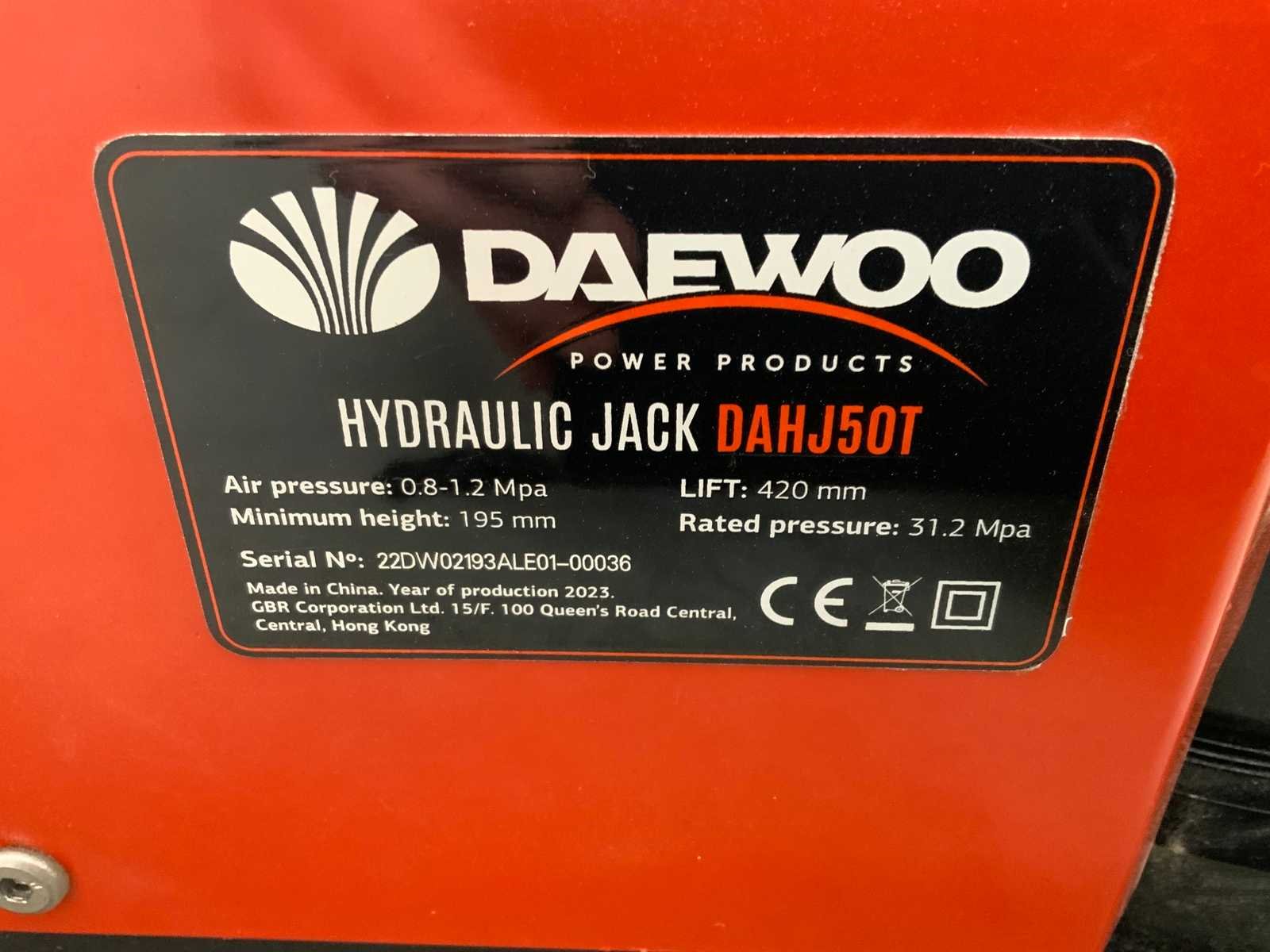 Max hoogte 420mm; min hoogte 195mm; 5635 Nee Merk: Daewoo Type: 50T. DAHJ Bouwjaar: 2025 Capaciteit.: 50.00t Eigen gewicht: 52kg