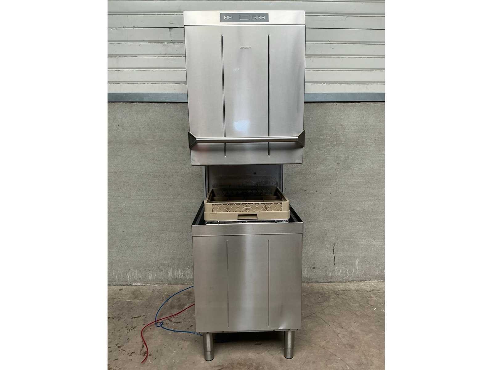 Doorschuif korvenvaatwasmachine voorzien aansluiting zeep-en glansmiddel, inclusief 1 korf, voorzien van perilexstekker Nee Merk: Smeg Type: HTY 505 D Rvs: true Doorschuifmodel: true Aansluiting: 400V Korf afmeting l: 50cm Korf afmeting b: 50cm Totale afmeting L: 740mm Totale afmeting Breedte: 810mm Totale afmeting Hoogte: 1560mm