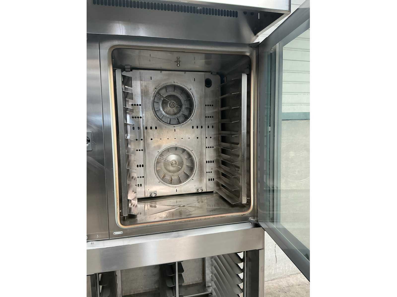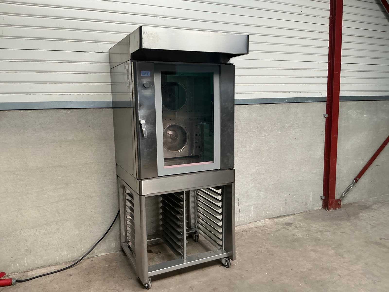 Rvs oven met 10 regalen op verrijdbaar rvs onderstel met 20 regalen, voorzien van afzuigkap Nee Merk: Wiesheu Type: B8 E 21S500 Digitale besturing: true Aansluiting: 400V Elektrisch: true Rvs: true Totale afmeting L: 94cm Totale afmeting Breedte: 112cm Totale afmeting Hoogte: 216cm Met onderstel: true