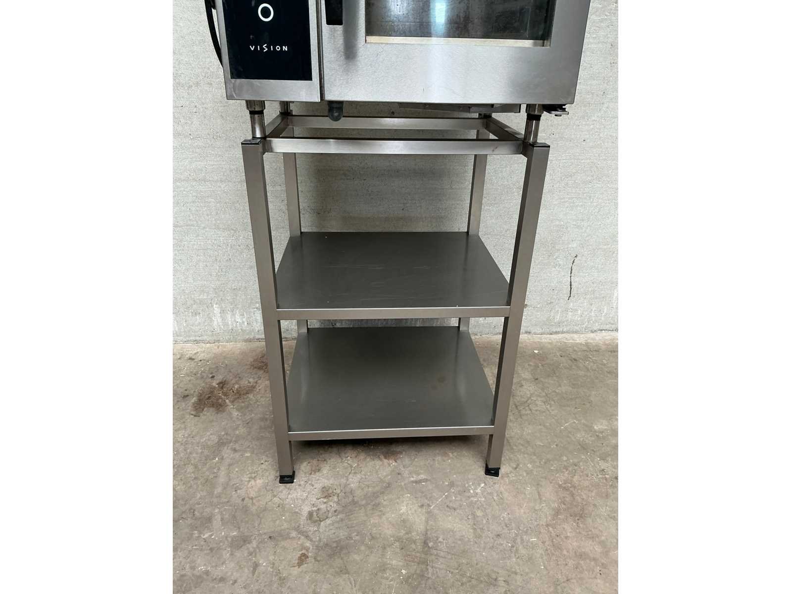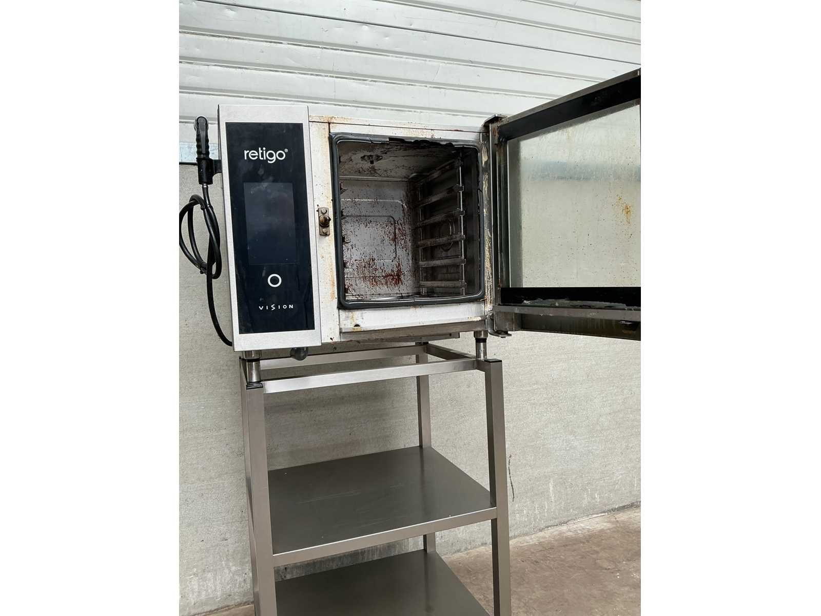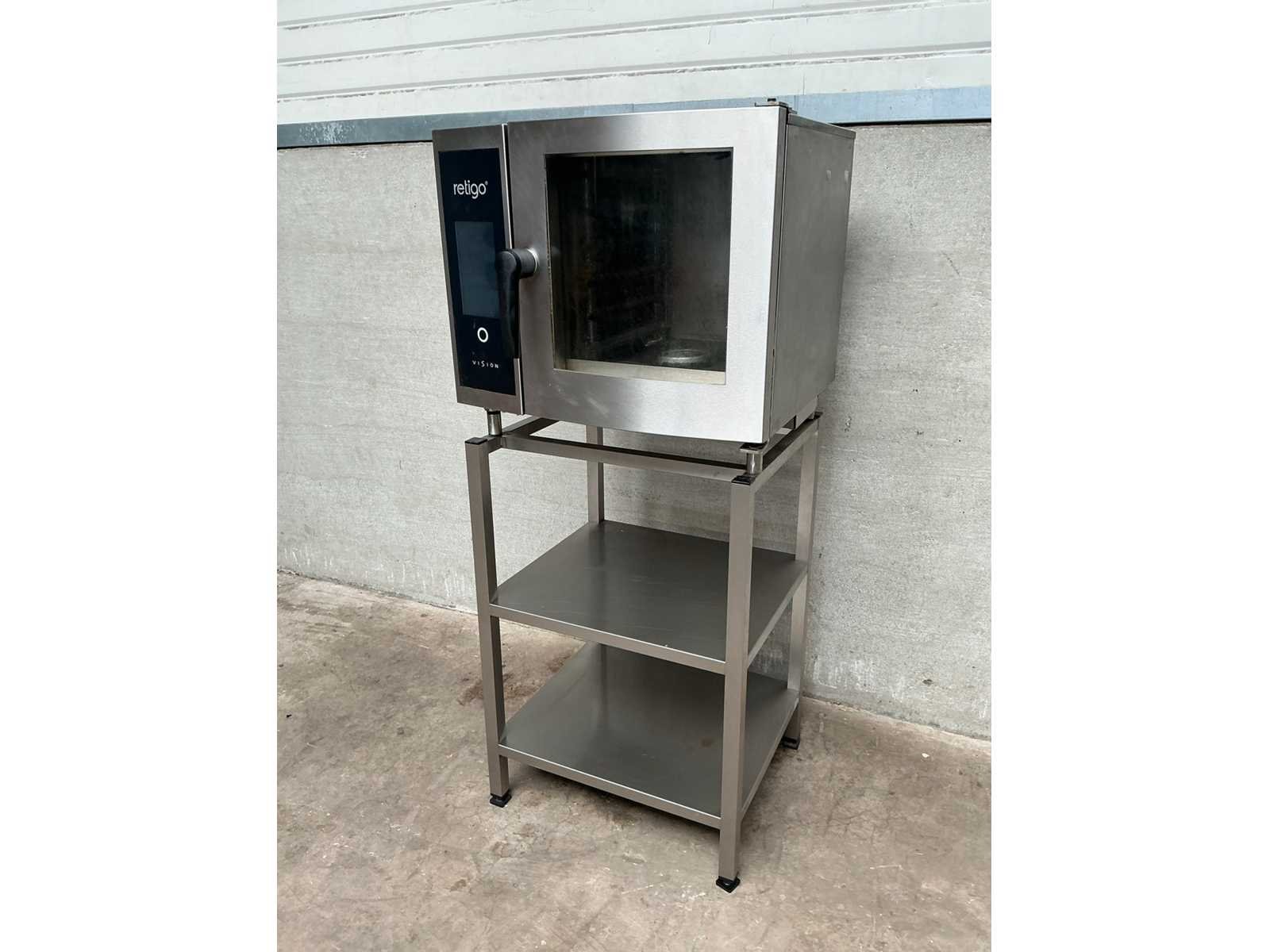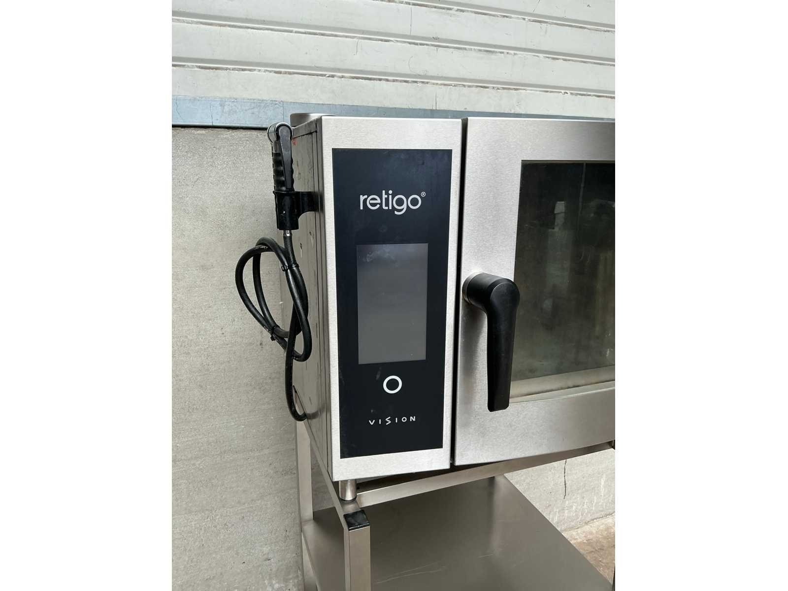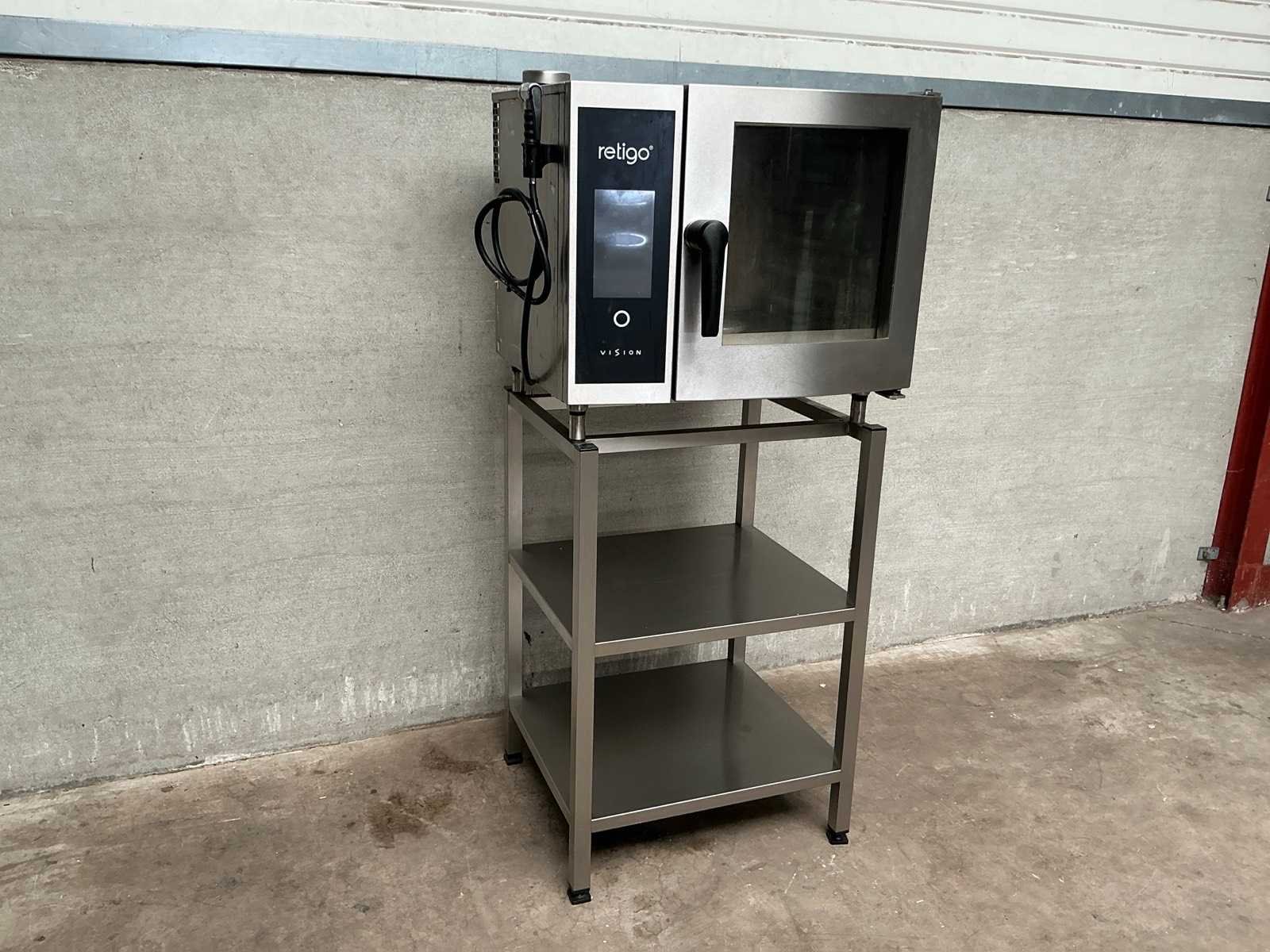 Retigo combisteamer op onderstel, handdouche lekt Nee Merk: Retigo Type: Vision Aantal niveau's: 6 Aansluiting: 400V Touchscreen bediening: true Elektrisch: true Rvs: true Totale afmeting L: 75cm Totale afmeting Breedte: 65cm Totale afmeting Hoogte: 156cm