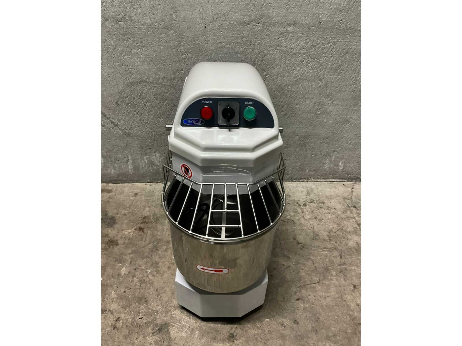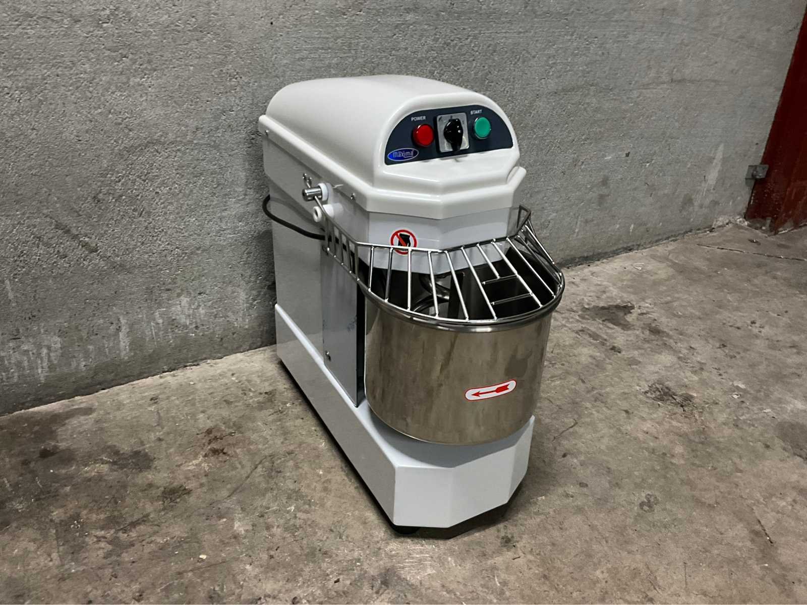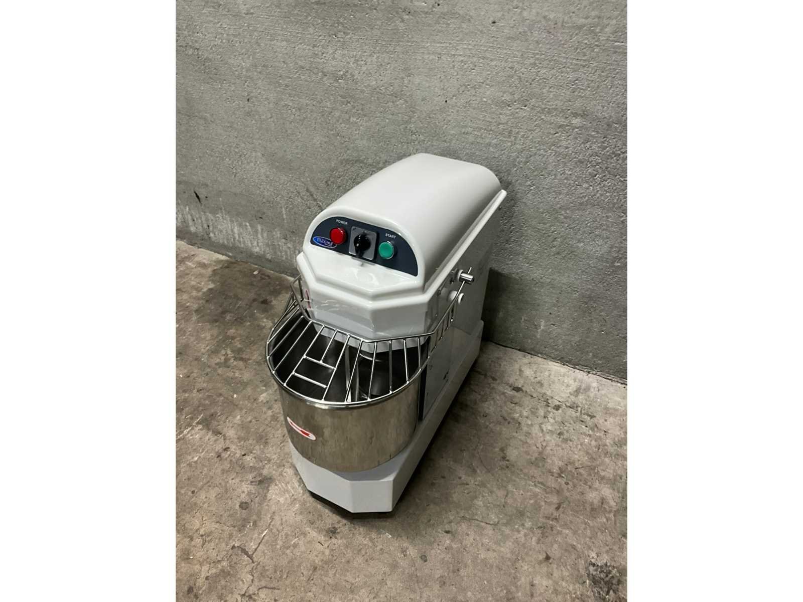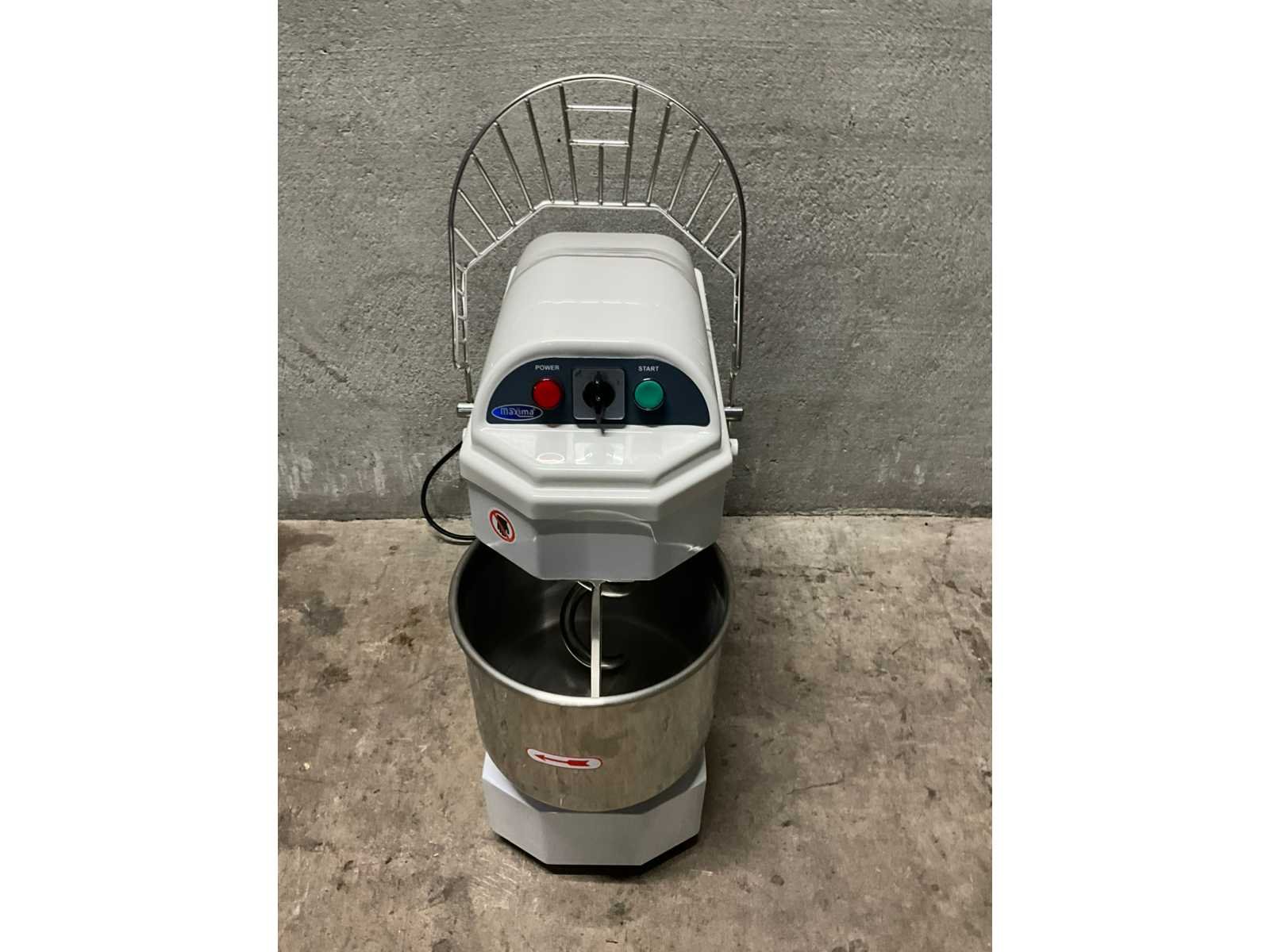 Ongebruikt, aandrijving met ketting en snaren, as en kneedarm van rvs, met veiligheidsschakelaar en metalen beschermtralie, netto capaciteit mengkom: 10,6 L, snelheden spiraal: 160 RPM, snelheden mengkom: 15 RPM, Max. hoeveelheid meel: 4 kg, Max. hoeveelheid deeg: 6 kg, Min. hoeveelheid deeg: 2 kg Nee Aansluiting: 230V Totale afmeting L: 290mm Totale afmeting Breedte: 640mm Totale afmeting Hoogte: 540mm