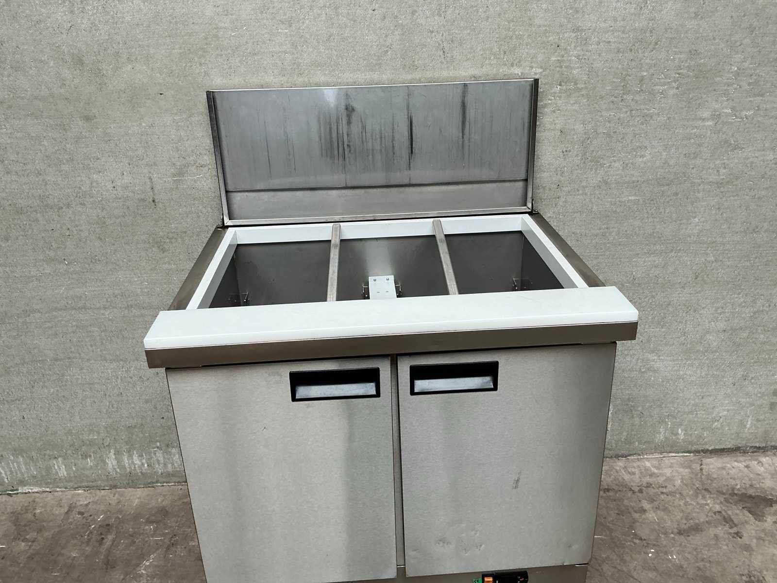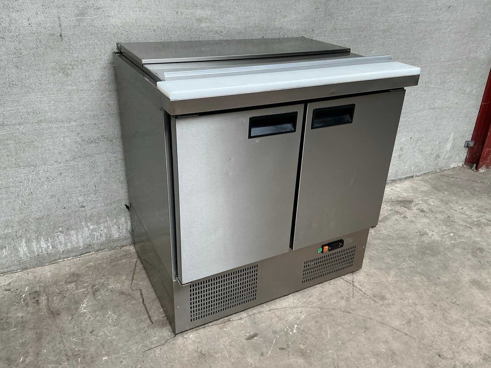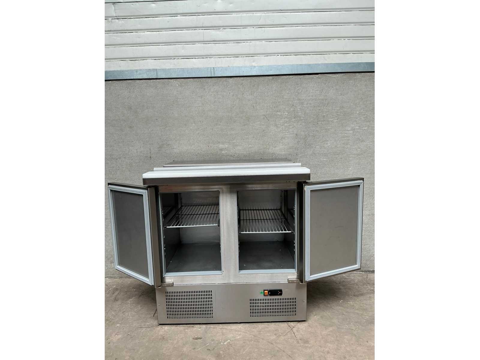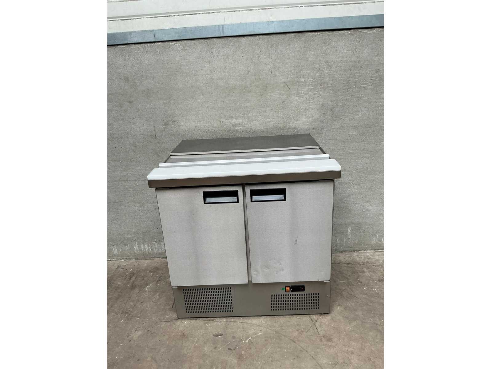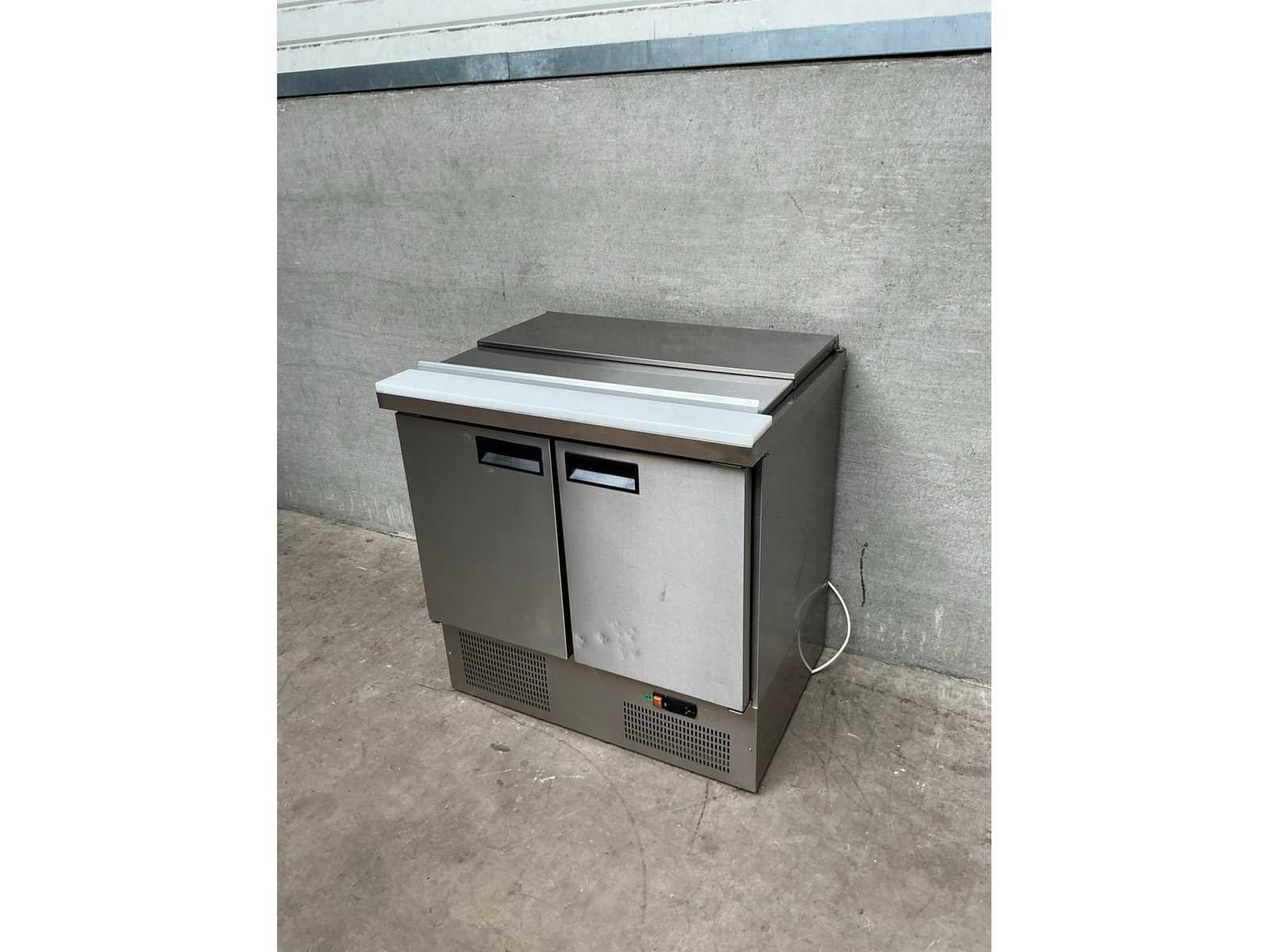 Rvs saladette voorzien van afdekplaat en snijplank Nee Ingebouwde koelcompressor: true Digitale uitlezing: true Rvs: true Aansluiting: 230V Totale afmeting L: 91cm Totale afmeting Breedte: 71cm Totale afmeting Hoogte: 94cm