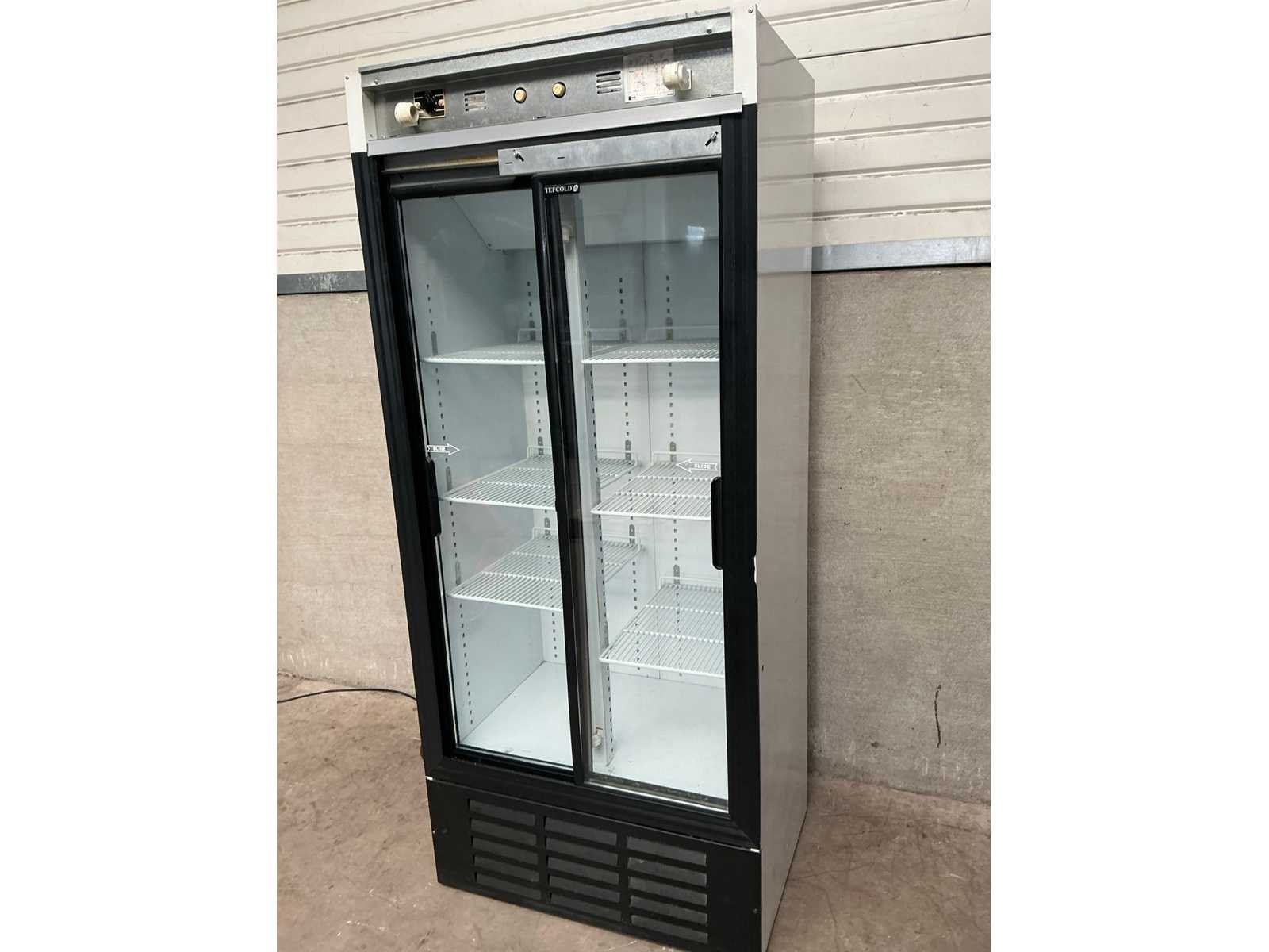 Glasdeurkoelkast voorzien van 6 in hoogte verstelbare roosters en 2 schuifdeuren, display ontbreekt Nee Merk: Tefcold Aansluiting: 230V Totale afmeting L: 89cm Totale afmeting Breedte: 64cm Totale afmeting Hoogte: 200cm