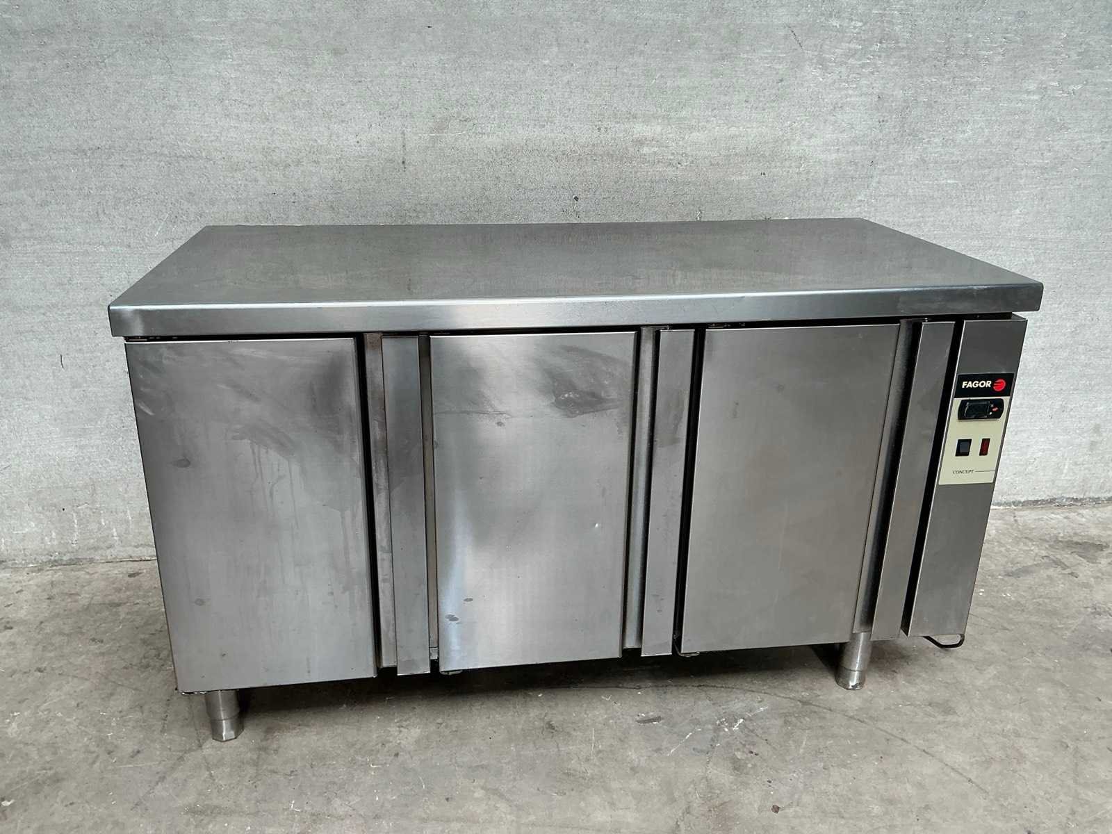 Rvs koelwerkbank, voorzien van 3 klapdeuren en diverse GN bakken, remote model exclusief motor Nee Merk: Fagor Totale afmeting L: 150cm Totale afmeting Breedte: 70cm Totale afmeting Hoogte: 86cm Digitale uitlezing: true Rvs: true Aansluiting: 230V