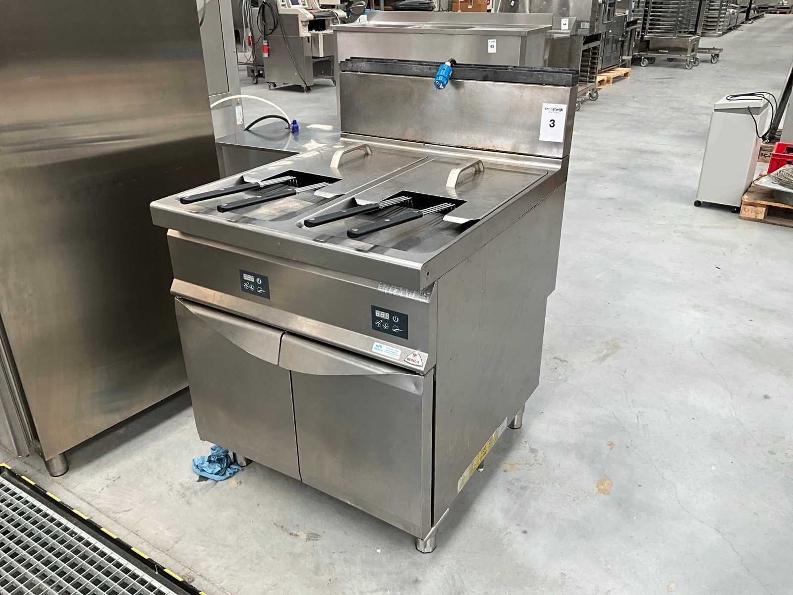 Voorzien van 4x mandje, 2x deksel Nee Merk: Bertos Lengte: 90cm Breedte: 80cm Hoogte: 120cm Materiaal: RVS Aantal zones: 2 Spanning: 220 Gas: true