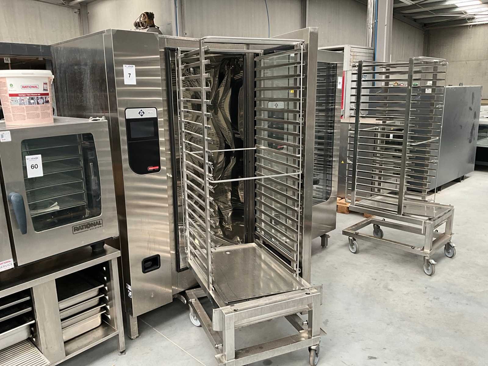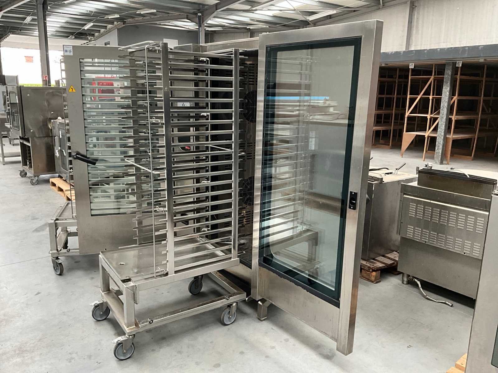 Voorzien van inrijwagen voor gastronom bakken rek Nee Merk: MKN Type: Flexi combi Aantal niveau's: 20 Vermogen: 60900W Aansluiting: 400V Digitale besturing: true Elektrisch: true Rvs: true Totale afmeting L: 100cm Totale afmeting Breedte: 112cm Totale afmeting Hoogte: 194cm