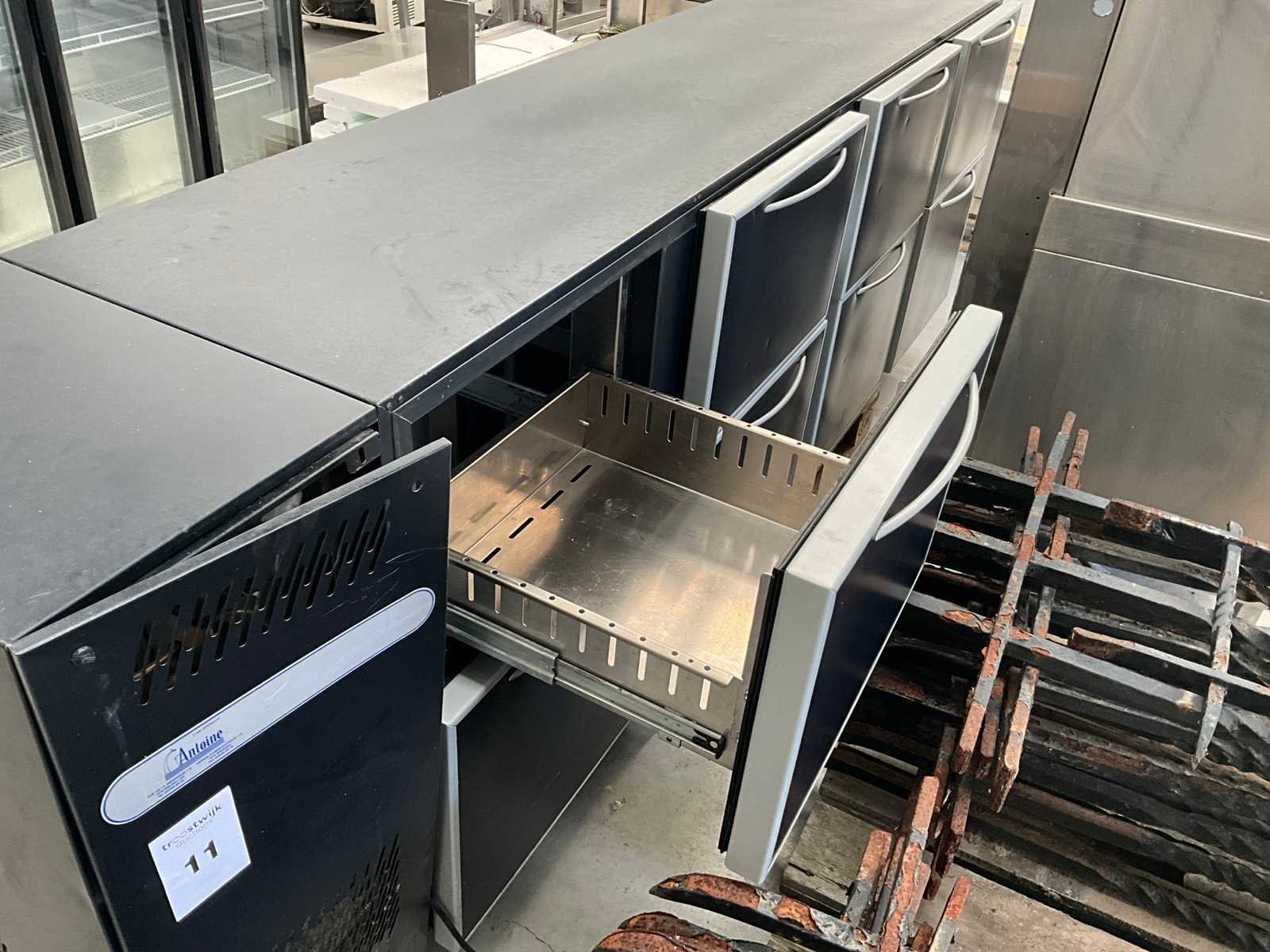Voorzien van 8x schuiflade, op pallet Nee Merk: Antoine Aansluiting: 220V Totale afmeting L: 550mm Totale afmeting Breedte: 2740mm Totale afmeting Hoogte: 820mm