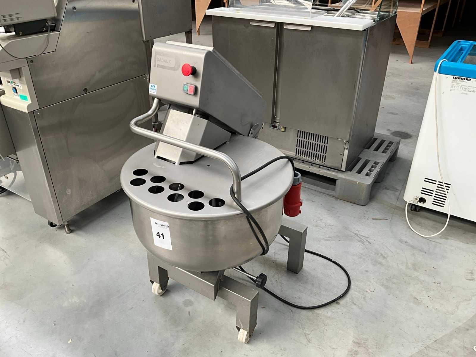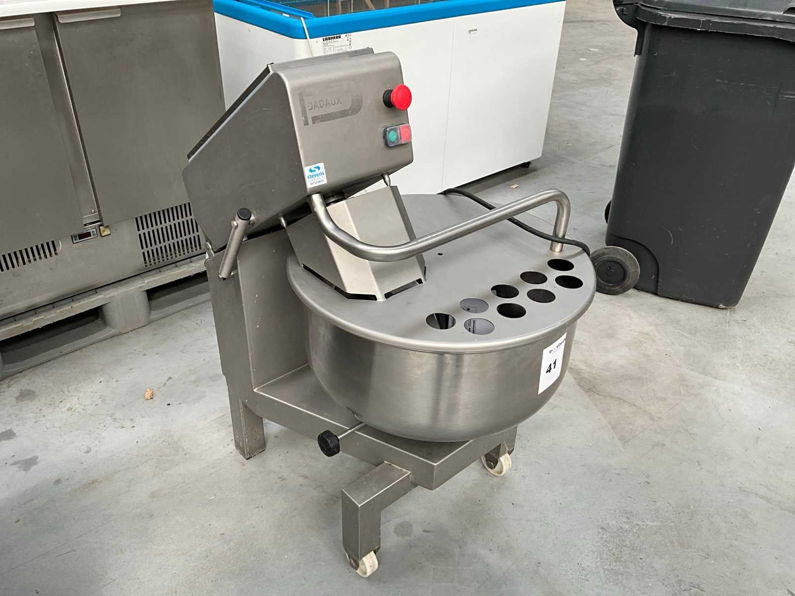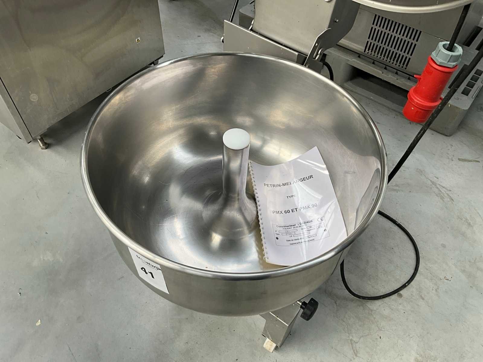 Voorzien van kantelbare mengkuip, driearmige menger, mobiele opstelling Nee Merk: Dadaux Type: PMX60 ET PMX90 Bouwjaar: 2013 Aansluiting: 380V Totale afmeting L: 800mm Totale afmeting Breedte: 600mm Totale afmeting Hoogte: 1000mm