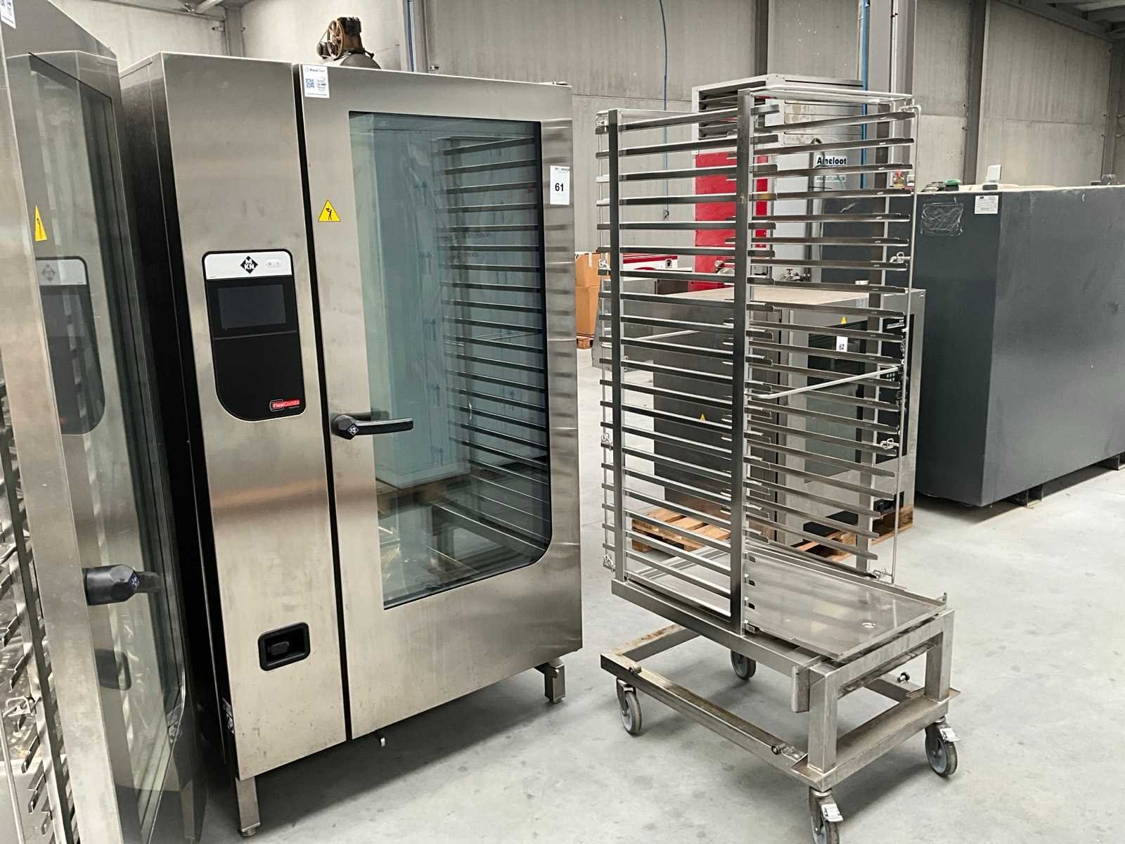 Voorzien van inrijwagen voor gastronom bakken rek Nee Merk: MKN Type: Flexi combi Aantal niveau's: 20 Vermogen: 60900W Aansluiting: 400V Digitale besturing: true Elektrisch: true Rvs: true Totale afmeting L: 100cm Totale afmeting Breedte: 112cm Totale afmeting Hoogte: 194cm