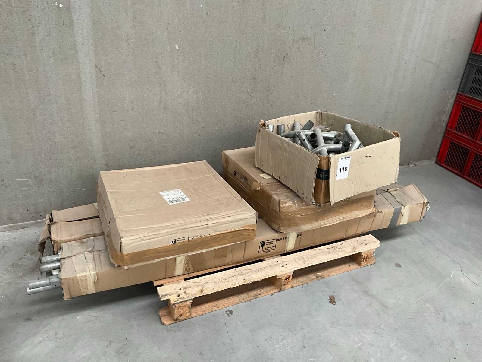 Bestaand uit koppelstukken en buizen, zeil, in originele verpakking Nee Merk: Tent fabric Model: 8 rood. Buizenframe Lengte: 800cm Breedte: 400cm