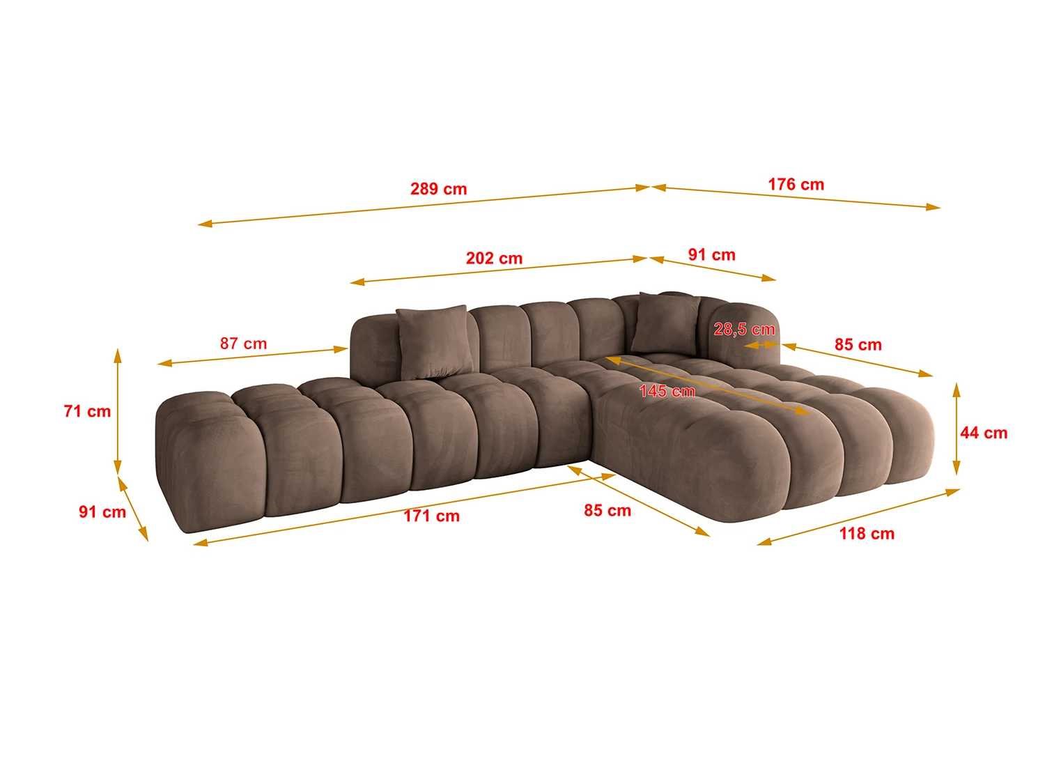 Fluwelen relatie Kleur Braun - Dream Velvet 202.37 Ottomaanse rechte positioneringsoptie Stofbeschrijving Dream Velvet Bekleding: Waterafstotend en gemakkelijk schoon te maken stof, slijtvastend (30.000 Martindale-cycli), lichtvasten (6), weinig pilling (4-5), 100% PES, 360 g/m² ± 5% Materiaalsamenstelling 100% polyester Pillingweerstand 5 Schuurbestendigheid 5 slijtbestand 30.000 Martindale-cycli Uitrustingskussen Woonkamer diepte 176 cm Breedte 289 cm Hoogte 71 cm Aantal zetels 6 zitvulling Wave veer + HR35 en T30 schuim Rugkussentype Vaste rug Aantal zitkussens 2 Aantal decoratieve kussens 2 Breedte van de pouf 118 cm Ottomaanse Rijk Diepte 145 cm Zitdiepte 60 cm Zithoogte 44 cm Armleuningsdiepte 91 cm armleuningbreedte 28,5 cm Armleuninghoogte 71 cm Non