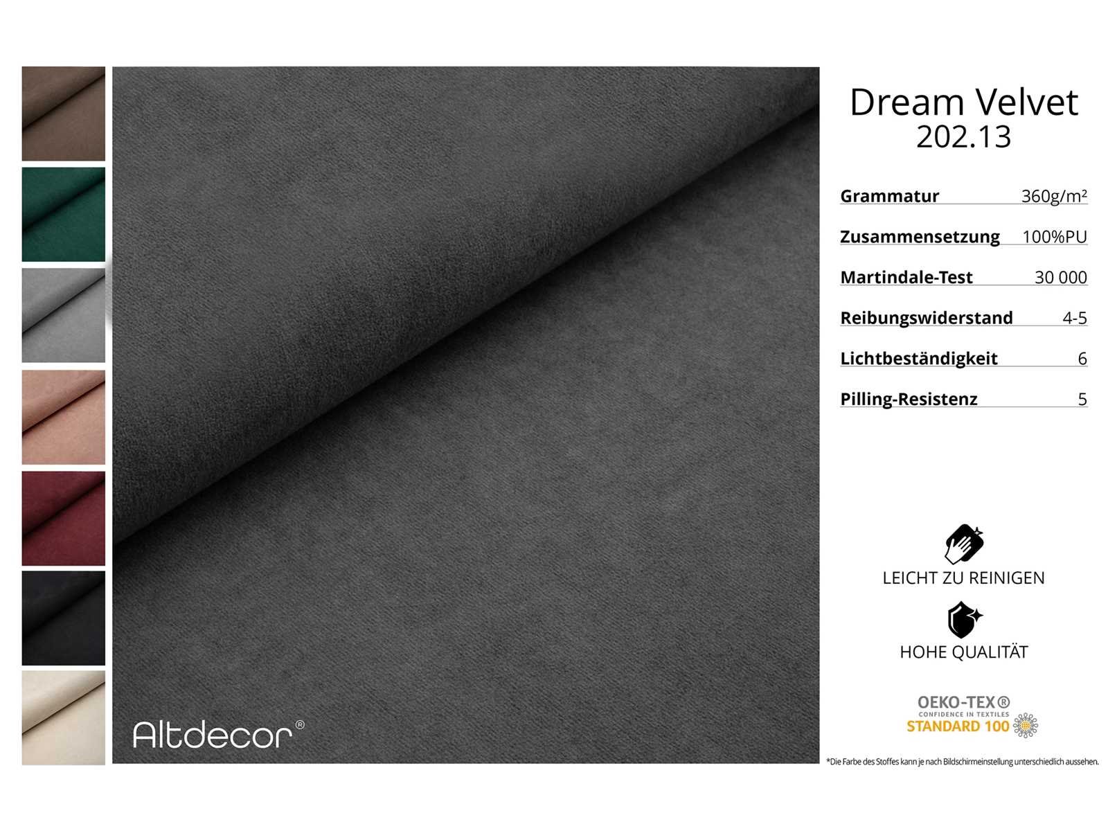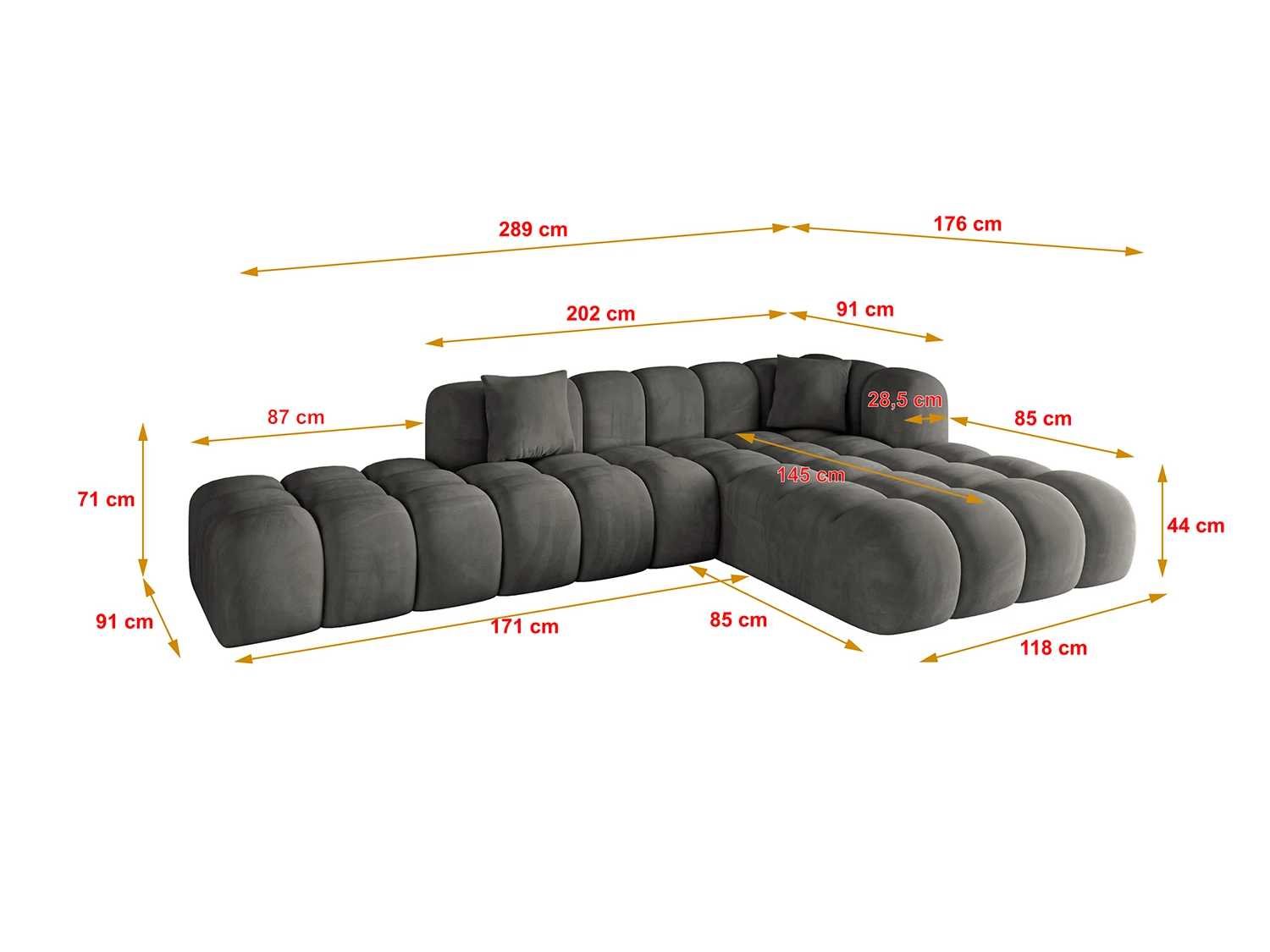 Fluwelen relatie Kleur Donkergrijs - Dream velvet 202.13 Ottomaanse rechte positioneringsoptie Stofbeschrijving Dream Velvet Bekleding: Waterafstotend en gemakkelijk schoon te maken stof, slijtvastend (30.000 Martindale-cycli), lichtvasten (6), weinig pilling (4-5), 100% PES, 360 g/m² ± 5% Materiaalsamenstelling 100% polyester Pillingweerstand 5 Schuurbestendigheid 5 slijtbestand 30.000 Martindale-cycli Uitrustingskussen Woonkamer diepte 176 cm Breedte 289 cm Hoogte 71 cm Aantal zetels 6 zitvulling Wave veer + HR35 en T30 schuim Rugkussentype Vaste rug Aantal zitkussens 2 Aantal decoratieve kussens 2 Breedte van de pouf 118 cm Ottomaanse Rijk Diepte 145 cm Zitdiepte 60 cm Zithoogte 44 cm Armleuningsdiepte 91 cm armleuningbreedte 28,5 cm Armleuninghoogte 71 cm Non