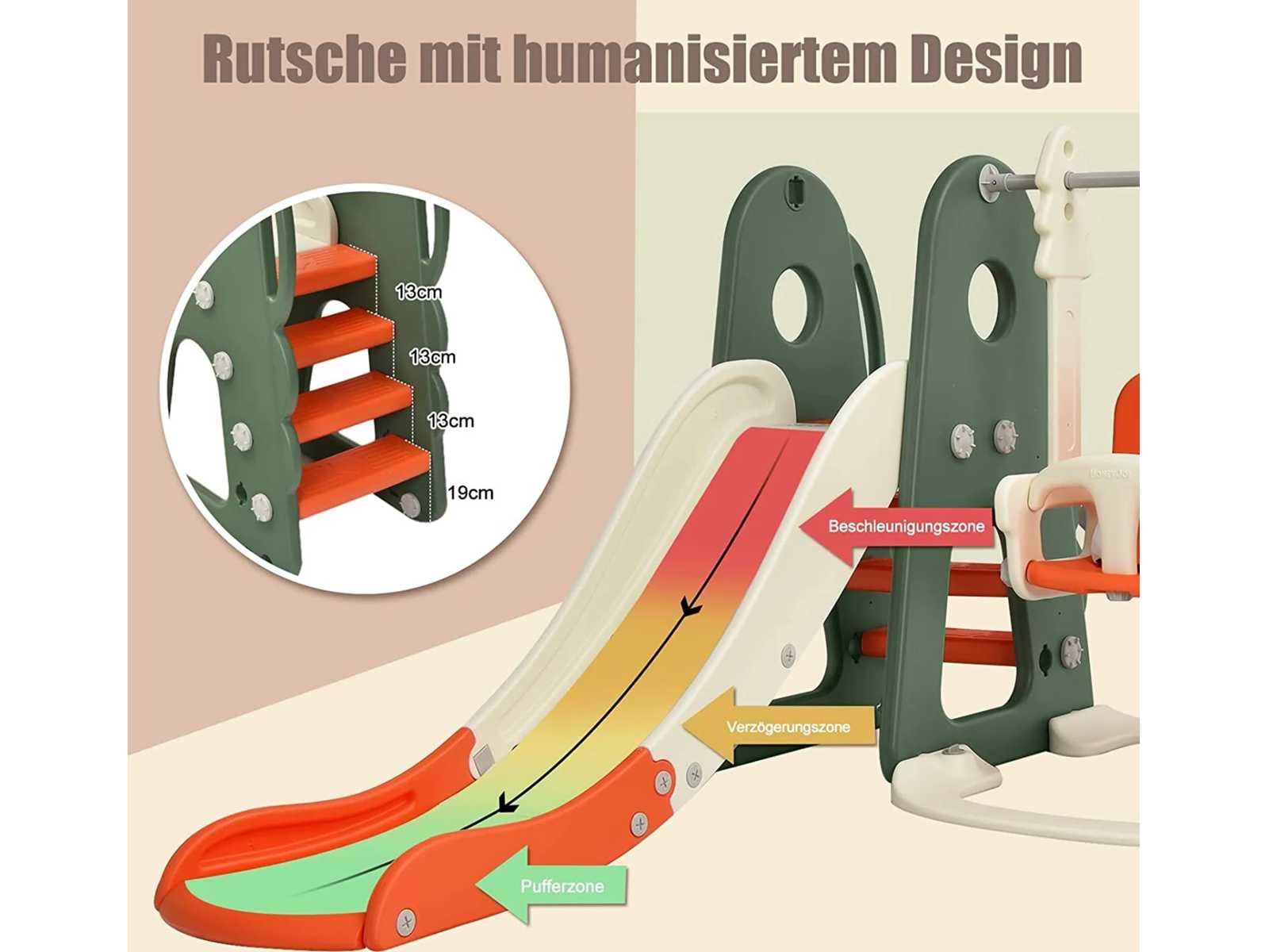 Het 6-in-1 spel ontwikkelt de hand-oogcoördinatie en balansvaardigheden van kinderen. Geselecteerd HDPE- en PP-materiaal voor een lange diensttijd Drie balspellen zijn een basketbalhoepel, een voetbaldoel en een golfhole Lange glijbaan met 3 activiteitszones om soepel te glijden en veilig te landen Verstelbare swing en basketbal kunnen in hoogte worden aangepast naarmate je kinderen ouder worden Antisliptreden voor comfortabel en veilig klimmen Gordel in de vorm van T-vorm en veiligheidsbeugel houden je kind veilig Technische kenmerken: Materiaal: HDPE, PP Totale afmetingen: 172 x 182 x 108-120 cm (L x B x H) Netto gewicht: 18 kg Draagvermogen van de slede: 20 kg Swing gewicht capaciteit: 20 kg Aanbevolen leeftijd: ouder dan 18 maanden 1 x Swing- & Slide-kit 1 x Basketbal 1 x Voetbal 2 x golfballen 1 x Golfclub 1 x Instructies Non