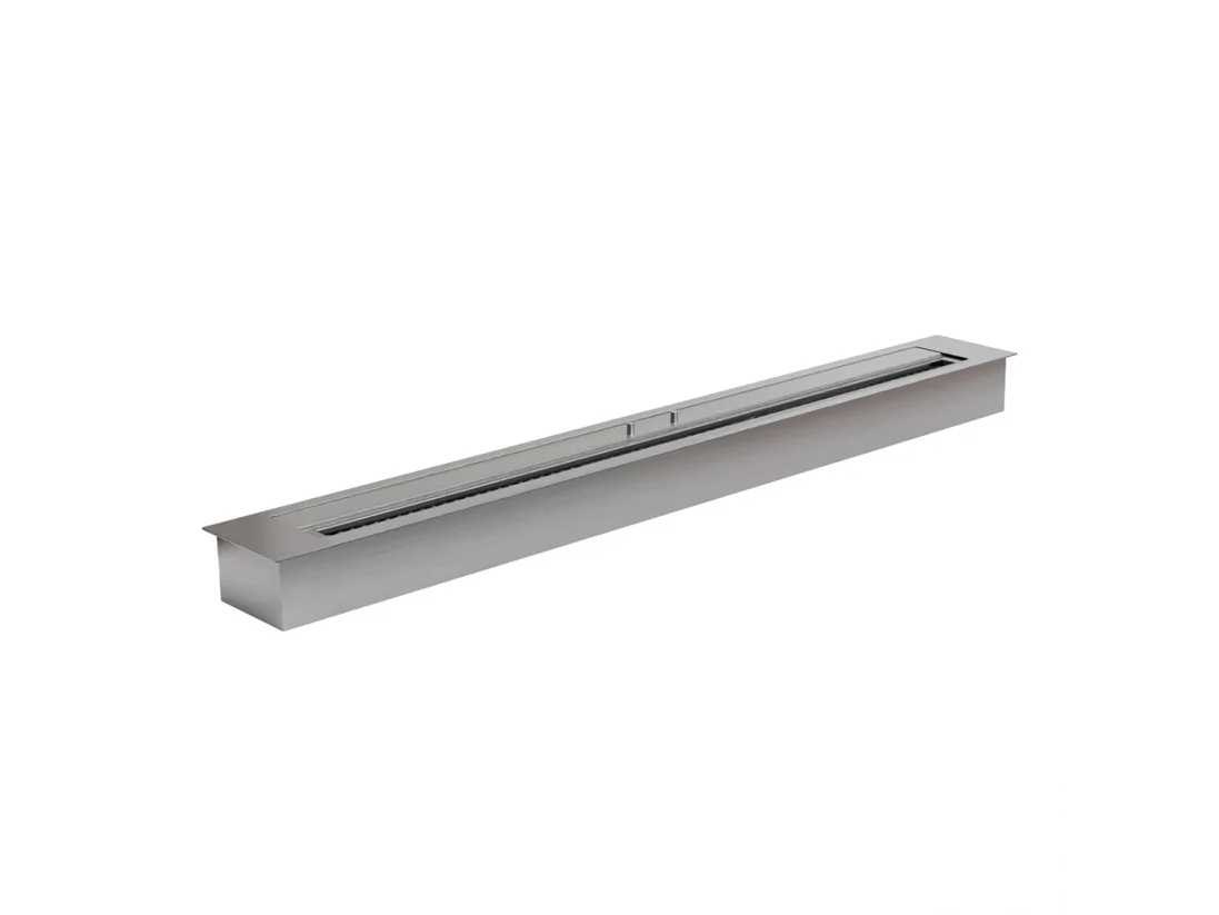Belangrijkste kenmerken Producttype: Handmatige bioethanolbrander Merk: ScandiFlames Gebruik: Binnen, Buiten Garantie: 2 jaar Afmetingen en gewicht Hoogte: 8 cm Breedte: 16 cm Lengte: 100 cm Gewicht: 22 kg Technische prestaties Minimale kamergrootte: 90 m³ Verwarmingsvermogen (maximaal): 6,5 kW Brandstof: Bioethanol Brandstofverbruik: 0,87 L/u Capaciteit: 5 L Brander en bedieningselementen Verstelbare vlam: Ja Besturing: Handmatig Afstandsbediening: Nee Materialen en installatie Materiaal: Staal Kleur: Staal Glas inbegrepen: Nee Stroomvereisten: Geen Non