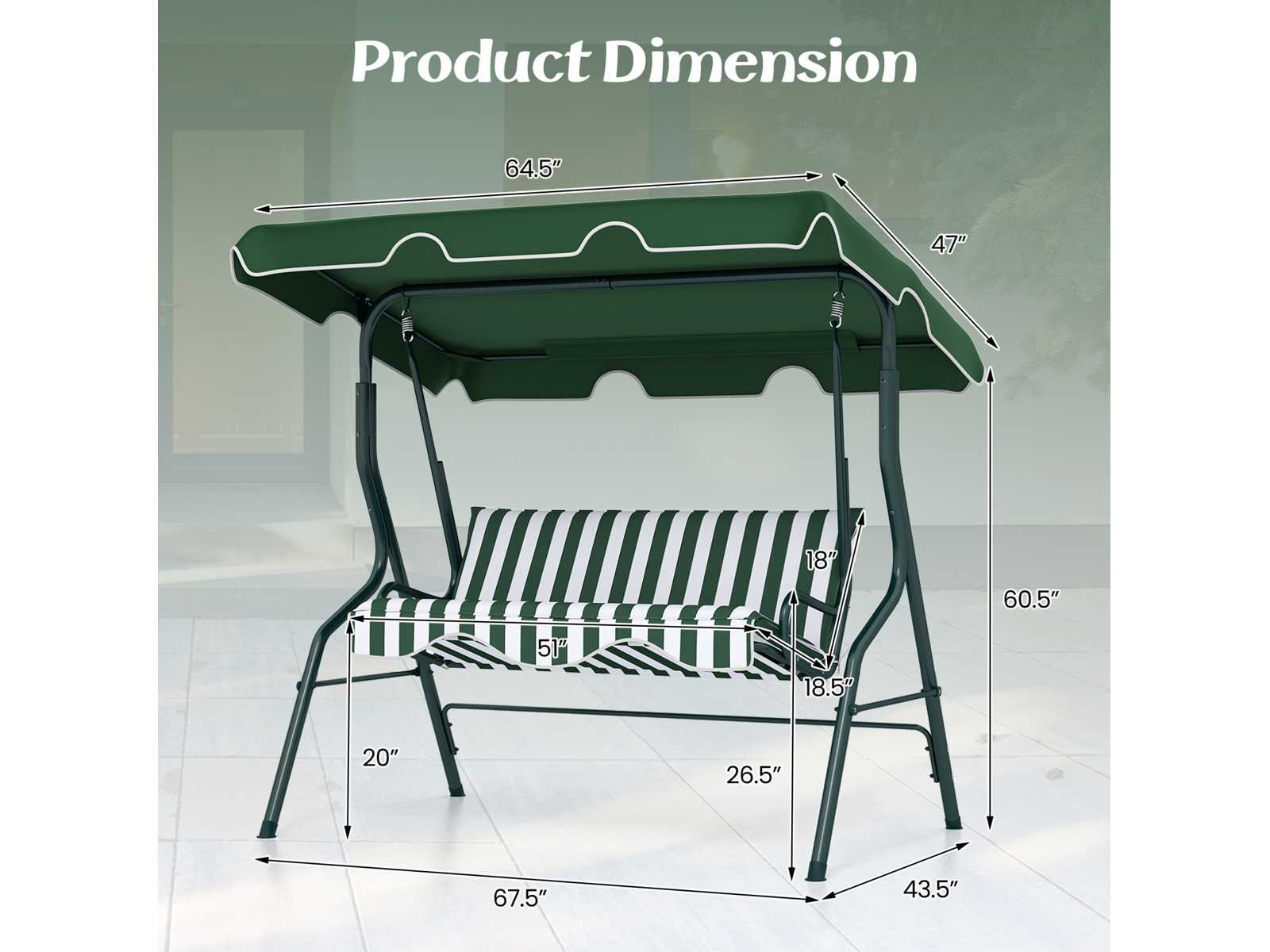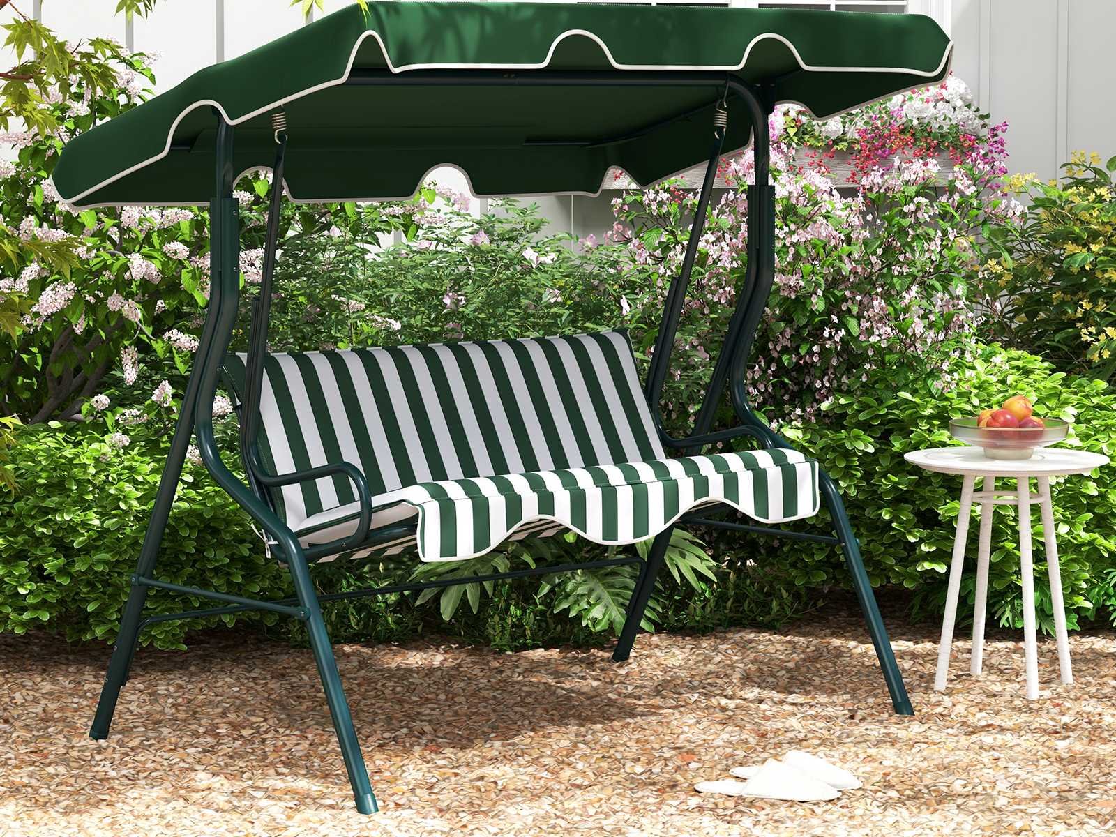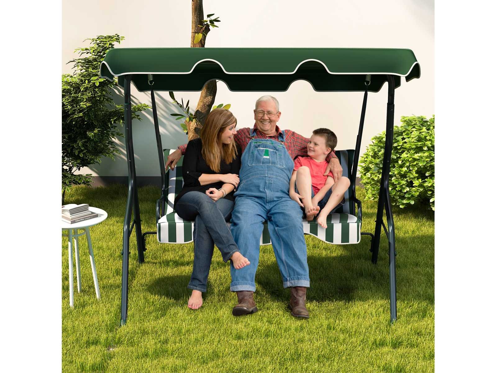 3-zits buitenschommel met luifel en gevoerd stalen frame