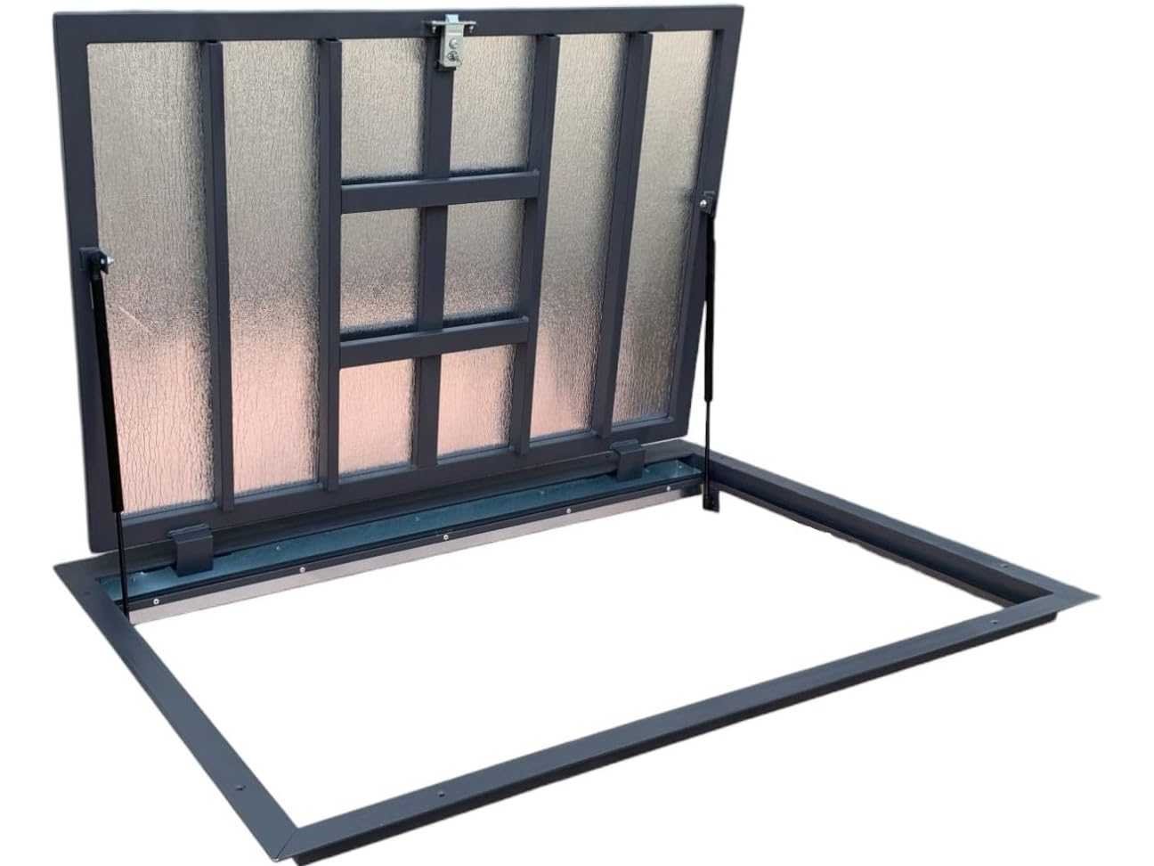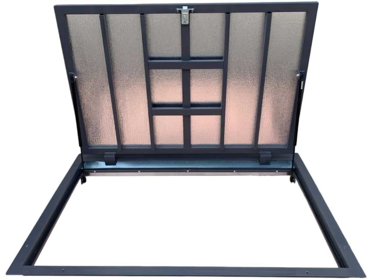 Functionele toegang tot de inspectiekanalen en kelders: met ons oog kan toegang tot de technische, onderhouds- of inspectiekanalen eenvoudig worden geregeld. De toegangsluik is geschikt voor diverse binnendoeleinden, bijvoorbeeld in kelders of technische ruimtes Dichting aan vier zijden: Het deksel is aan alle vier zijden voorzien van een perimeterafdichting. Geplaatst tussen het frame en de afdekking helpt het de luchtuitwisseling tussen het kanaal en het interieur te verminderen. Het ontwerp is erop gericht zo strak mogelijk te sluiten Afmetingen voor verschillende installatiesituaties: De uitsparing is verkrijgbaar in het formaat 700 x 1200 mm (verzonken afmetingen), met een totale afmetingen van 790 x 1290 mm en een deurafmeting van 620 x 1180 mm. Het ontwerp maakt aanpassing mogelijk aan verschillende installatiebeperkingen Robuuste versie met aluminium of stalen frame: Afhankelijk van de variant is het frame van de vloeropening gemaakt van aluminium of staal. Het deksel is uitgerust met een vochtbestendige, vezelversterkte gipsplaat, geschikt voor binnengebruik. De aluminium constructie is lichter, gemakkelijk te monteren en geschikt voor natte omgevingen, terwijl de stalen versie een stijvere constructie biedt voor hogere eisen Openings- en vergrendelingsmechanisme: Om het openen en sluiten te vergemakkelijken, is het vloerluik uitgerust met een gasveermechanisme met een aandrijfelement van een Duitse fabrikant. De constructie bevat ook een ingebouwd slot met handvat voor gemakkelijker hanteren Non