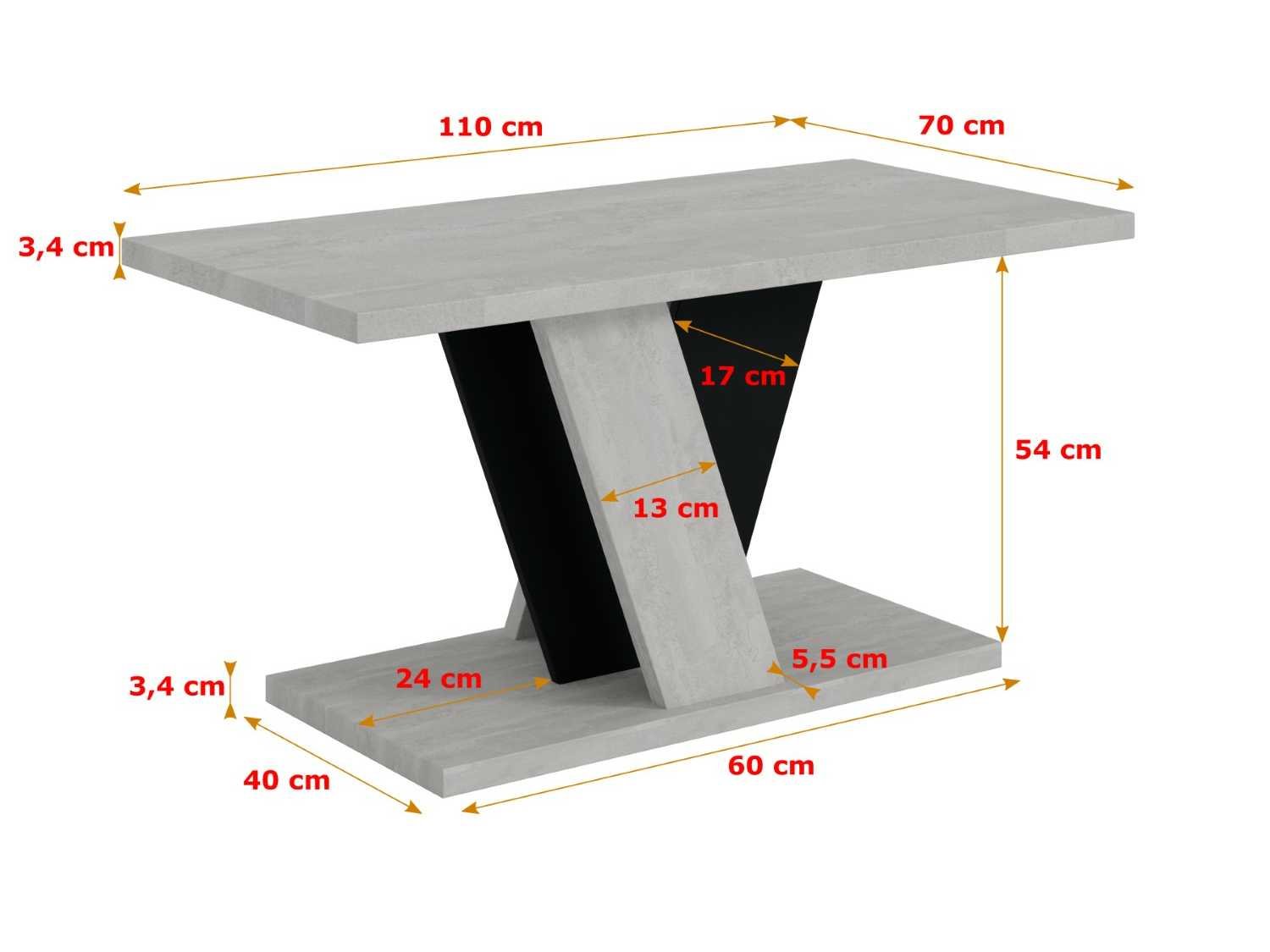 Woonkamer Moderne stijl Kleur Concrete Look K350 / Zwart Tafelbladkleur grijs Frame Kleur Grijs - Zwart Breedte 110 cm diepte 70 cm Hoogte 60 cm Rechthoekige vorm Framemateriaal Houtgebaseerd materiaal Frame Type V-frame Aantal etappes 1 Tafelhoogte 3,4 cm Tafelbreedte 110 cm Betonachtige oppervlakte-uitstraling Non