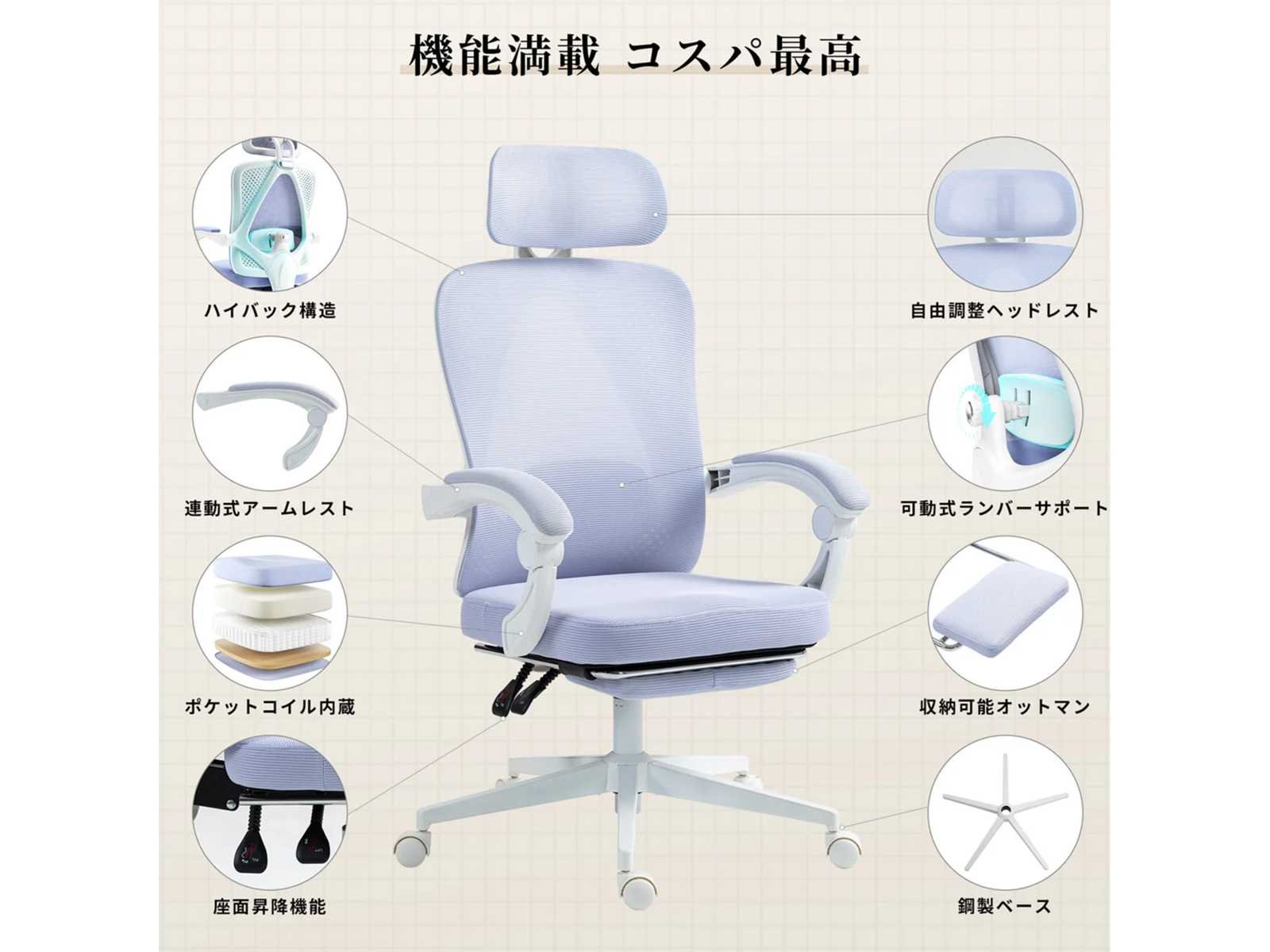[Aanbevolen voor wie op zoek is naar stijl en functionaliteit] De gloednieuwe Dowinx-serie, "WB01", is ontworpen om ergonomie en comfort perfect te combineren. Het sobere en elegante ontwerp past in elke omgeving, op kantoor of thuis. Hoogwaardige materialen en zorgvuldig vakmanschap bieden een bureaustoel die stijlvol, comfortabel en praktisch is. Deze stoel combineert functionaliteit die vermoeidheid tijdens lange gamen of werksessies vermindert met een ontwerp dat naadloos aansluit bij je dagelijks leven. ? Aanpasbaar naar jouw voorkeuren, geschikt voor verschillende maten en houdingen? Deze stoel heeft een verstelbare hoofdsteun en lendensteun voor optimale ondersteuning van hoofd en onderrug. De hoofdsteun is 6 cm in hoogte verstelbaar en draait 50°, zodat je hem naar wens kunt aanpassen. Daarnaast is de lendensteun verstelbaar in hoogte en breedte, waardoor het gemakkelijker is een ideale houding te behouden, die van nature in een S-vorm gebogen is. Deze aanpassingen zorgen voor individueel zitcomfort. [Comfort vergelijkbaar met luxe banken] De stoel heeft een unieke W-vorm die perfect aansluit bij de heuplijn. Hij heeft pocketveren, hetzelfde type dat wordt gebruikt in luxe banken, die een evenwichtige ondersteuning bieden, niet te stevig of te zacht. Het pocketspoelkussen verdeelt de lichaamsdruk gelijkmatig, waardoor vermoeidheid wordt verminderd. Daarnaast biedt de hoogwaardige gaascoating uitstekende ademendheid, wat zorgt voor optimaal comfort, zelfs in de zomer. Non