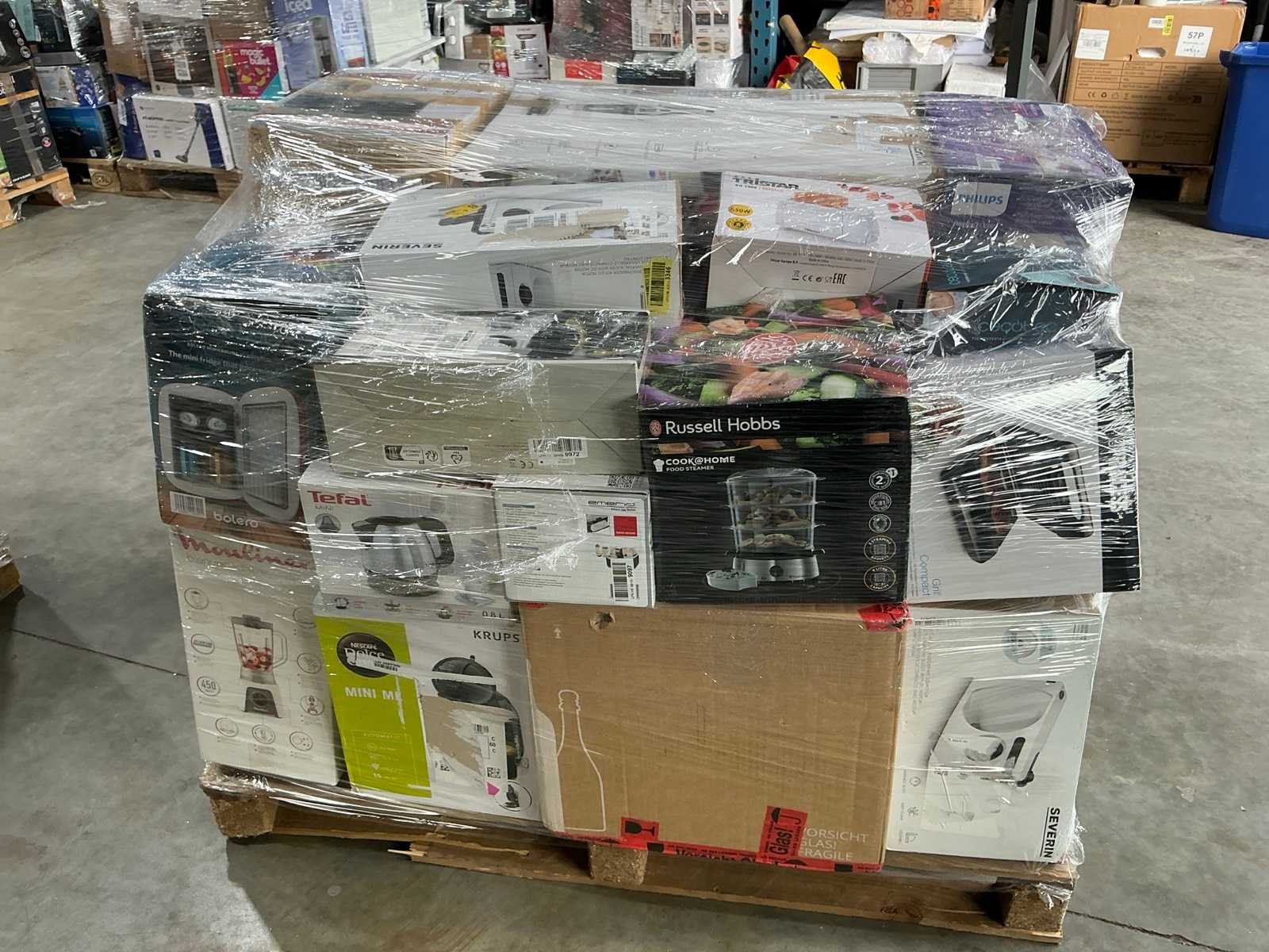 Waaronder stofzuiger, koffiemachine, magnetron,… Liggende op 1x pallet. Nee