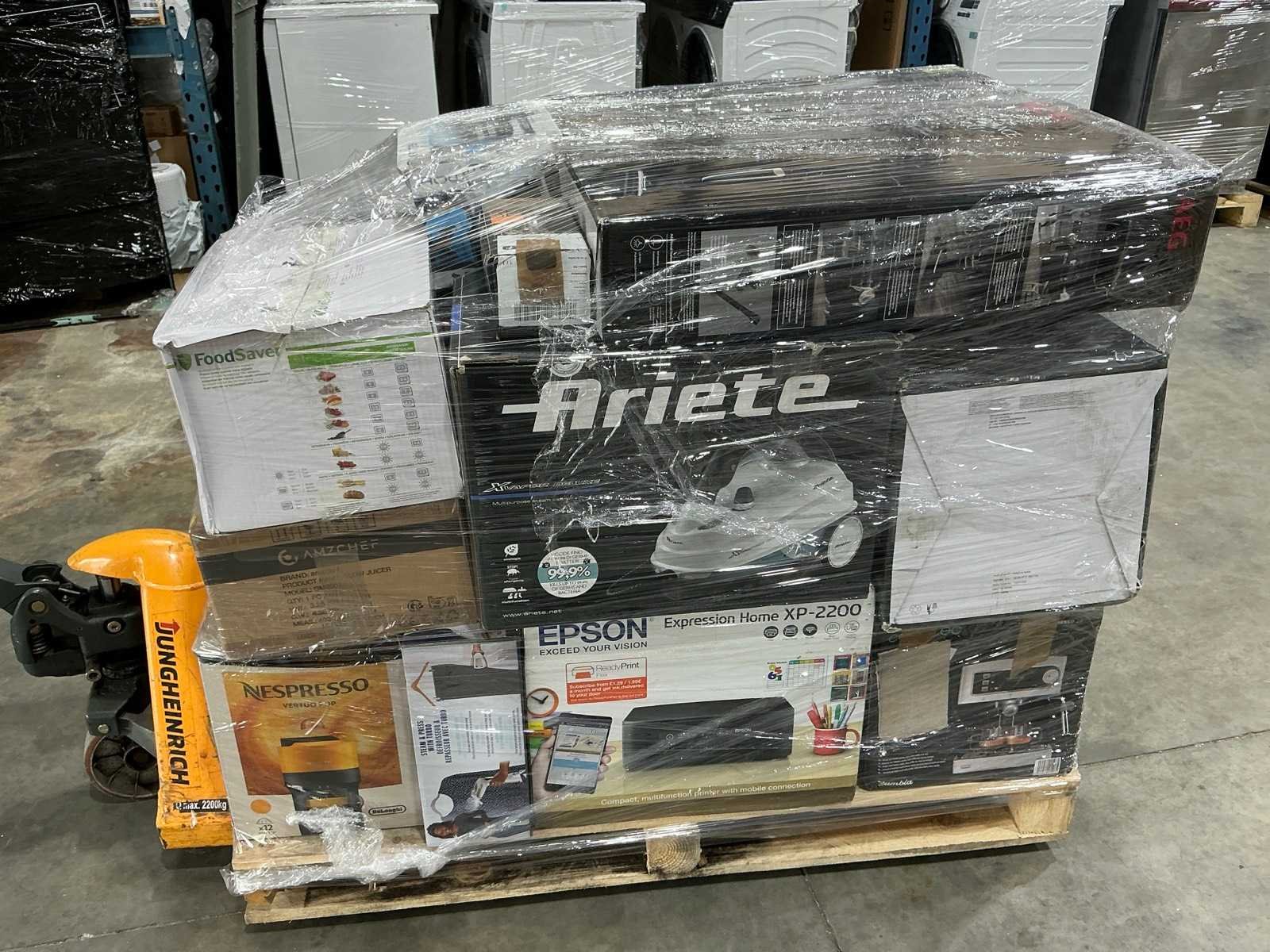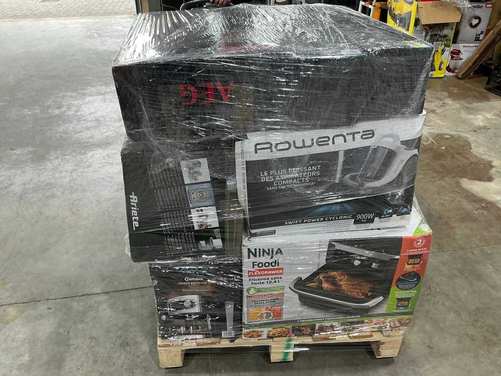 Waaronder stofzuiger, koffiemachine, magnetron,… Liggende op 1x pallet. Nee