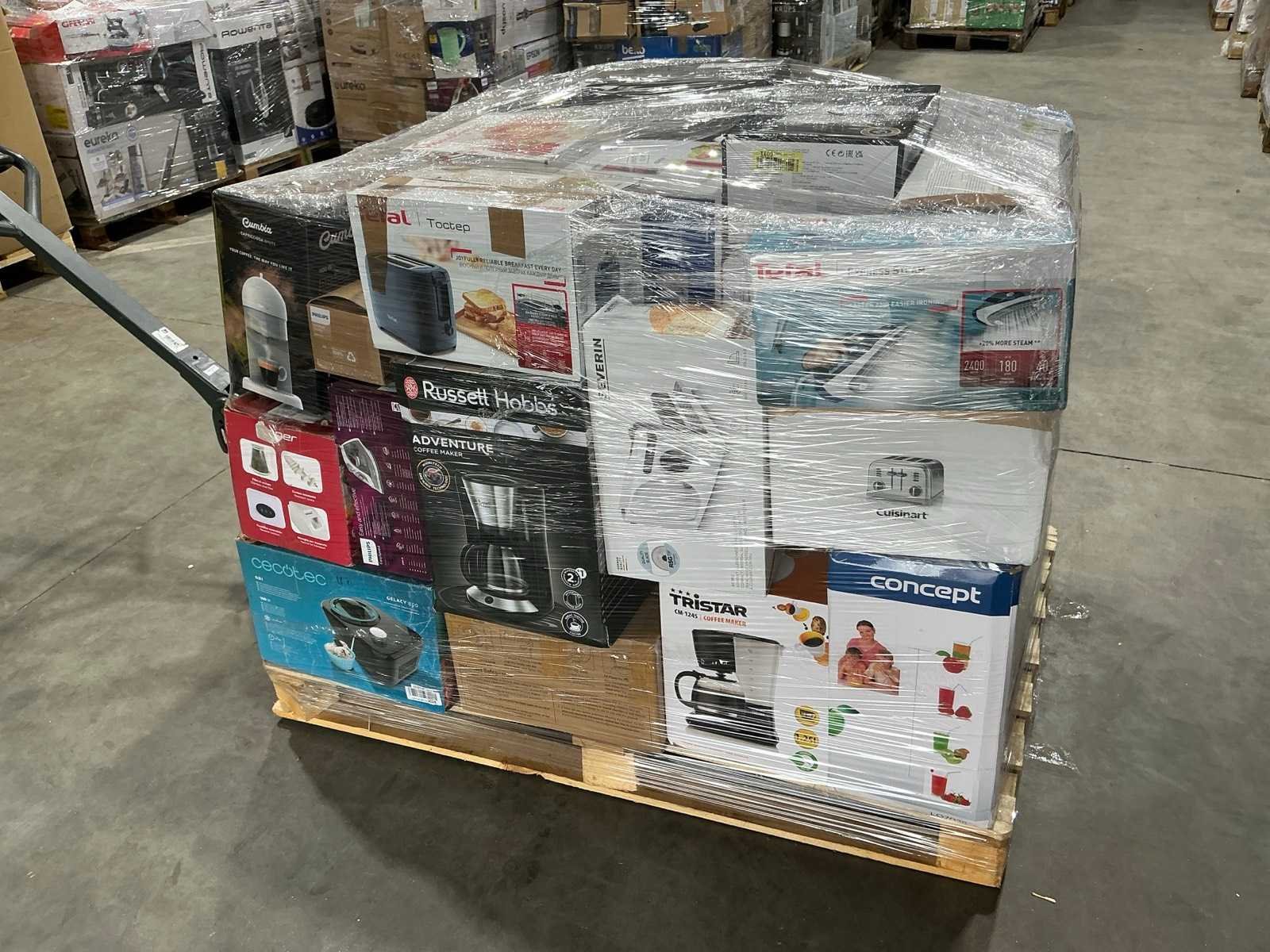 Waaronder stofzuiger, koffiemachine, magnetron,… Liggende op 1x pallet. Nee