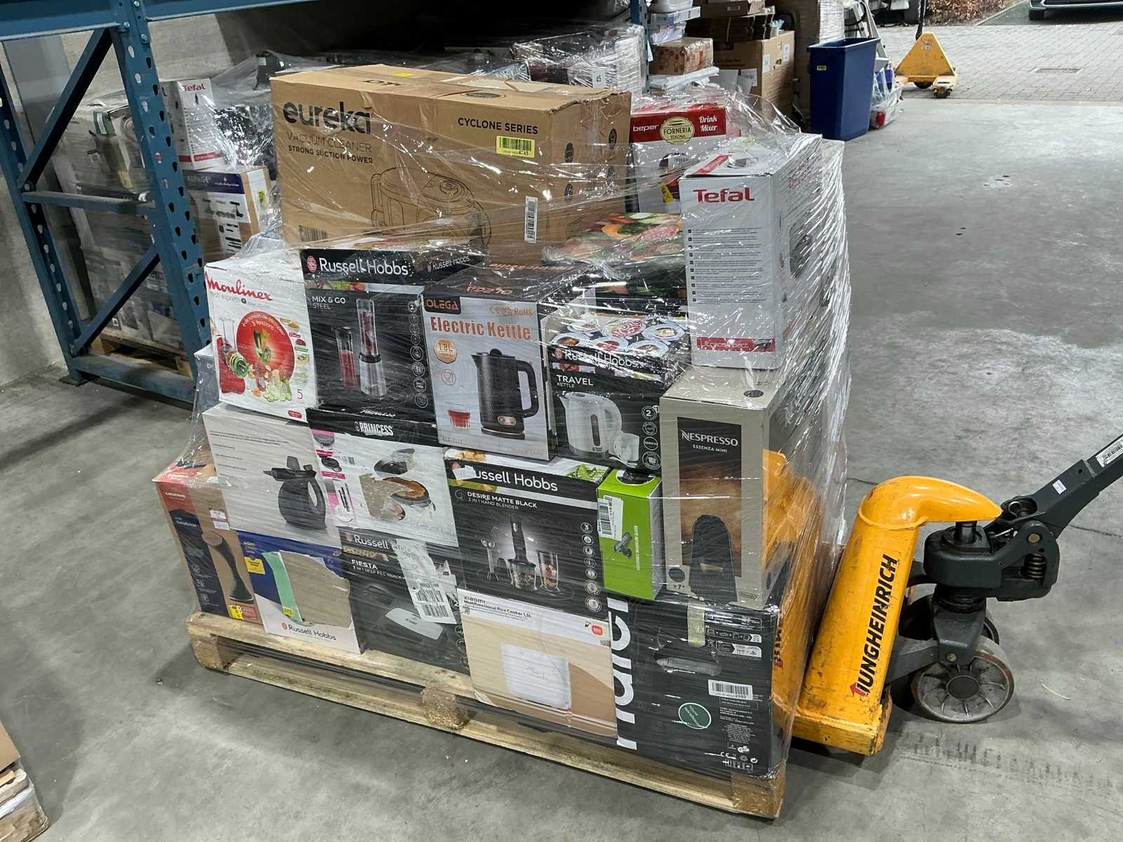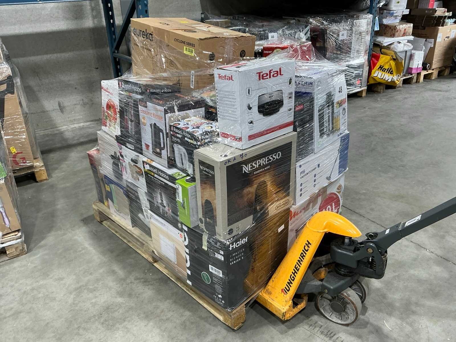 Waaronder stofzuiger, koffiemachine, magnetron,… Liggende op 1x pallet. Nee